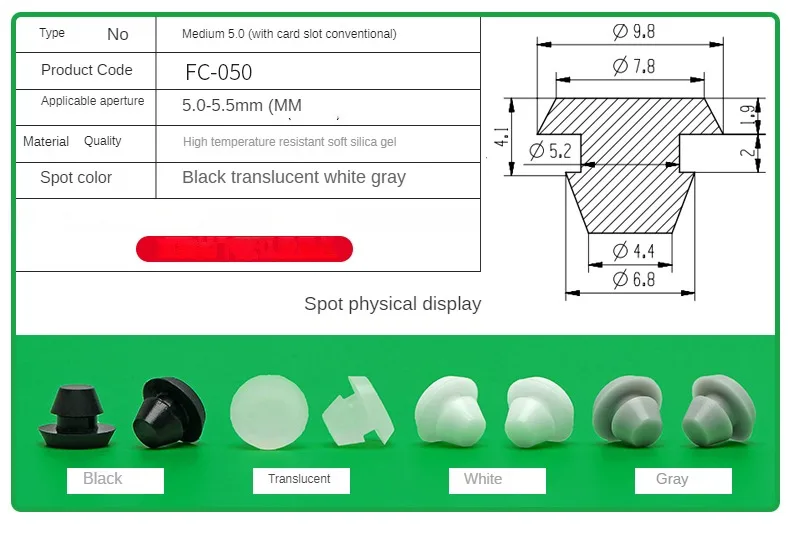 Измерьте точную диафрагму вашего продукта. Например, если диафрагма вашей железной пластины 5 мм, вы можете выбрать FC-050 продукт