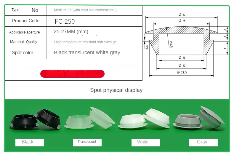 Измерьте точную диафрагму вашего продукта. Например, если диафрагма вашей панели составляет 10 мм, вы можете выбрать FC-100 продукт