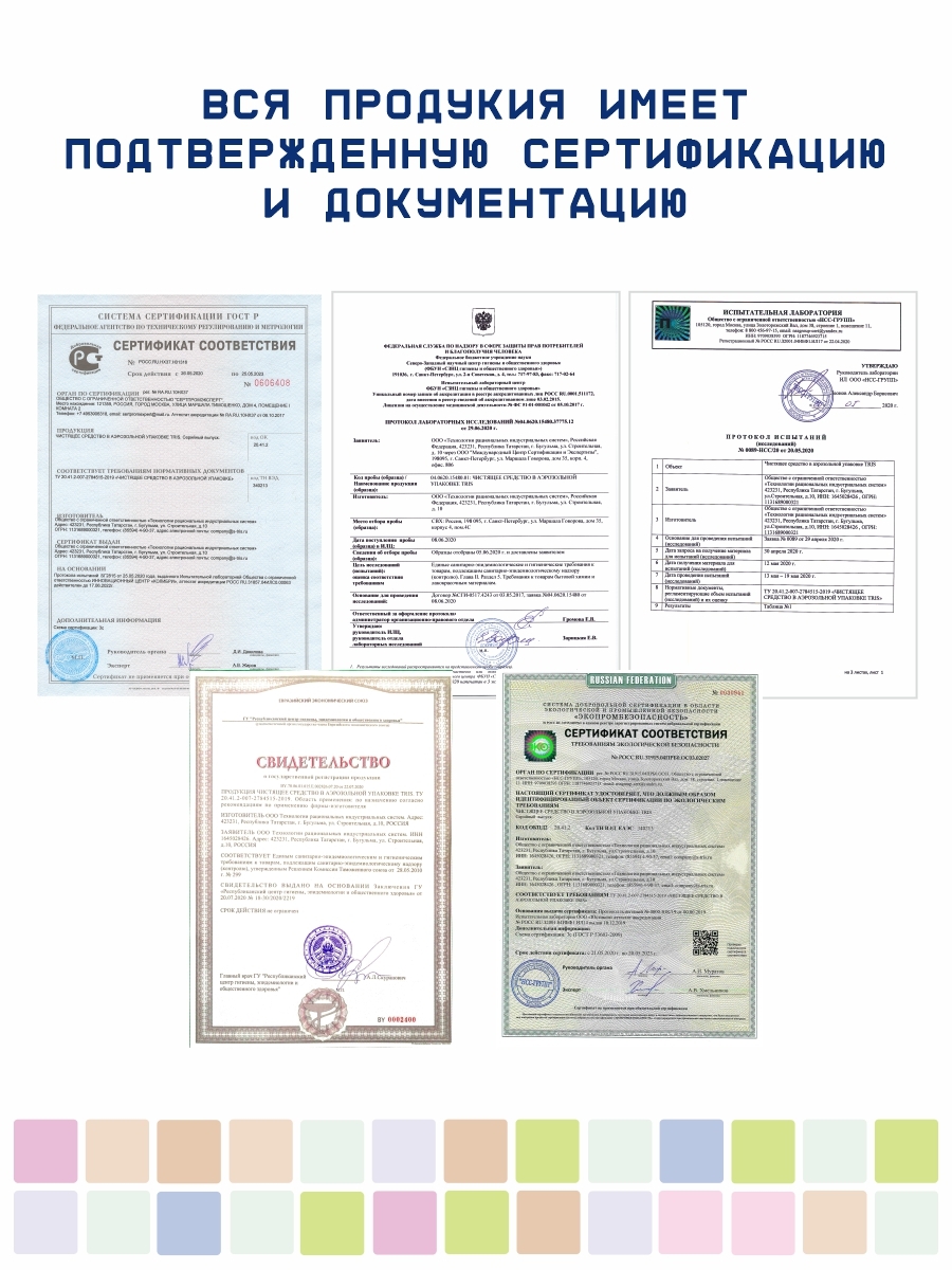 Особенности применения: Антибактериальный эффект, Гипоаллергенность, Не требует смывания водой