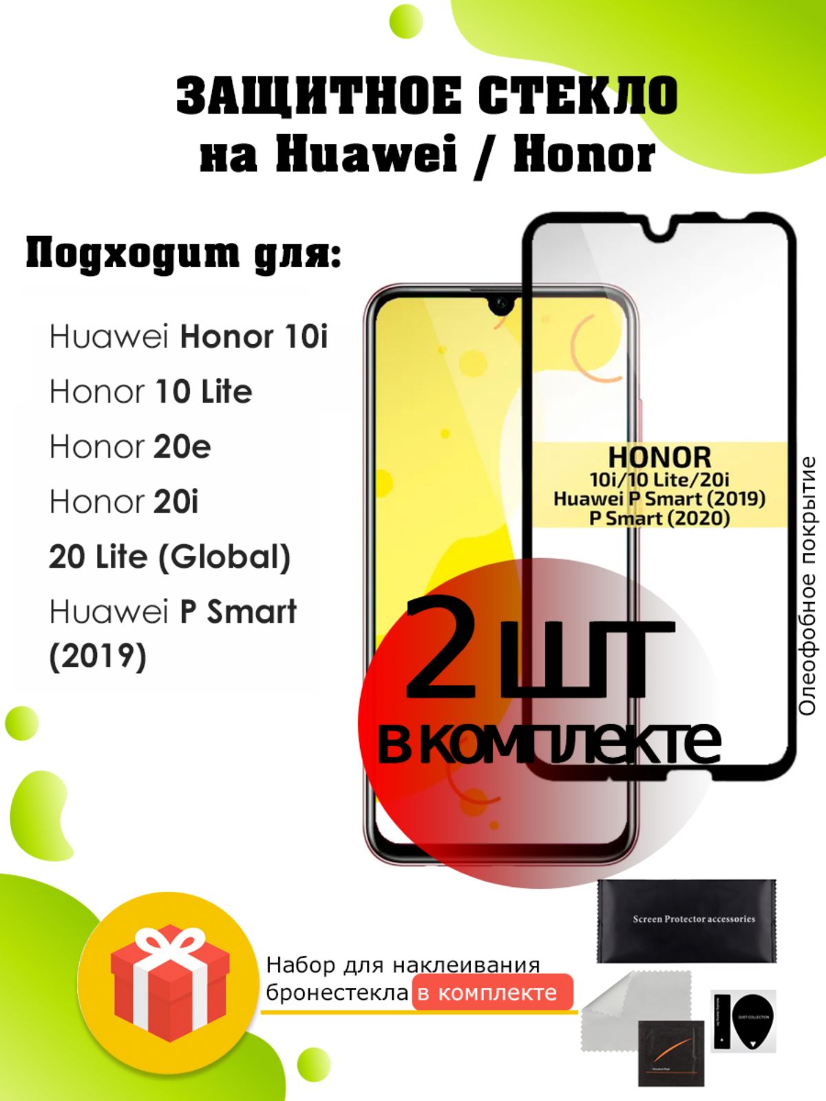 защитное стекло, бронестекло, противоударное стекло, защита экрана смартфона, защита экрана телефона, набор для поклейки стекла, набор для наклейки защитного стекла, закаленное стекло на телефон, закаленное стекло для телефона, броня, бронепленка, набор для наклейки стекла, клей для стекла телефона, защита дисплея смартфона, олеофобное покрытие для смартфона, защита экрана смартфона, современная защита экрана, защитное бронестекло. Защитное стекло на Huawei Honor 10i, 10 Lite, 20e, 20i, 20 Lite (Global), Huawei P Smart (2019) – 2 шт
