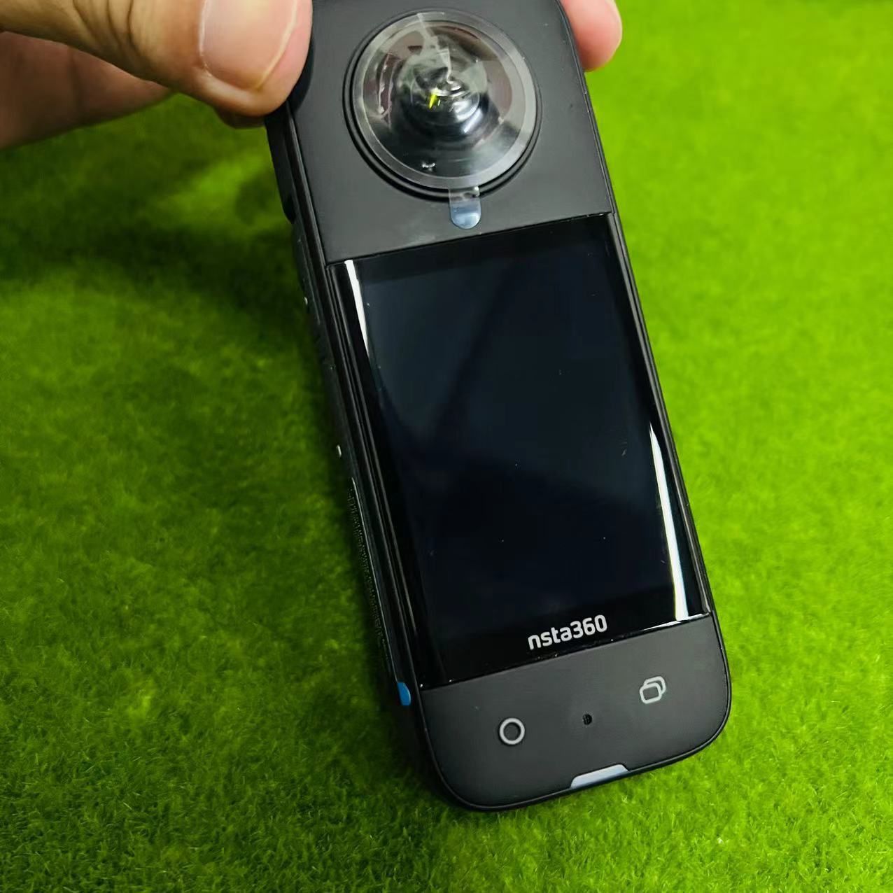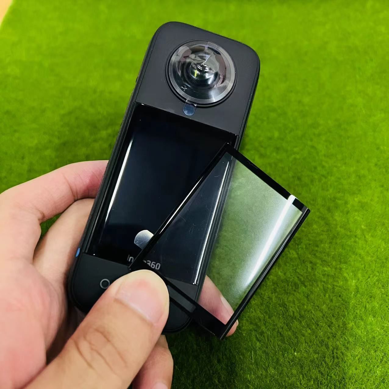 Клеить защитное стекло на Insta 360 совсем не сложно. Снимите с него защитную пленку, аккуратно двумя руками приложите стекло к экрану почти не касаясь его поверхности и, убедившись в точности положения, аккуратно разгладьте поверхность защитного стекла на дисплее . Полностью равномерная темная поверхность приклеивания говорит об отсутствии под ним частиц пыли.