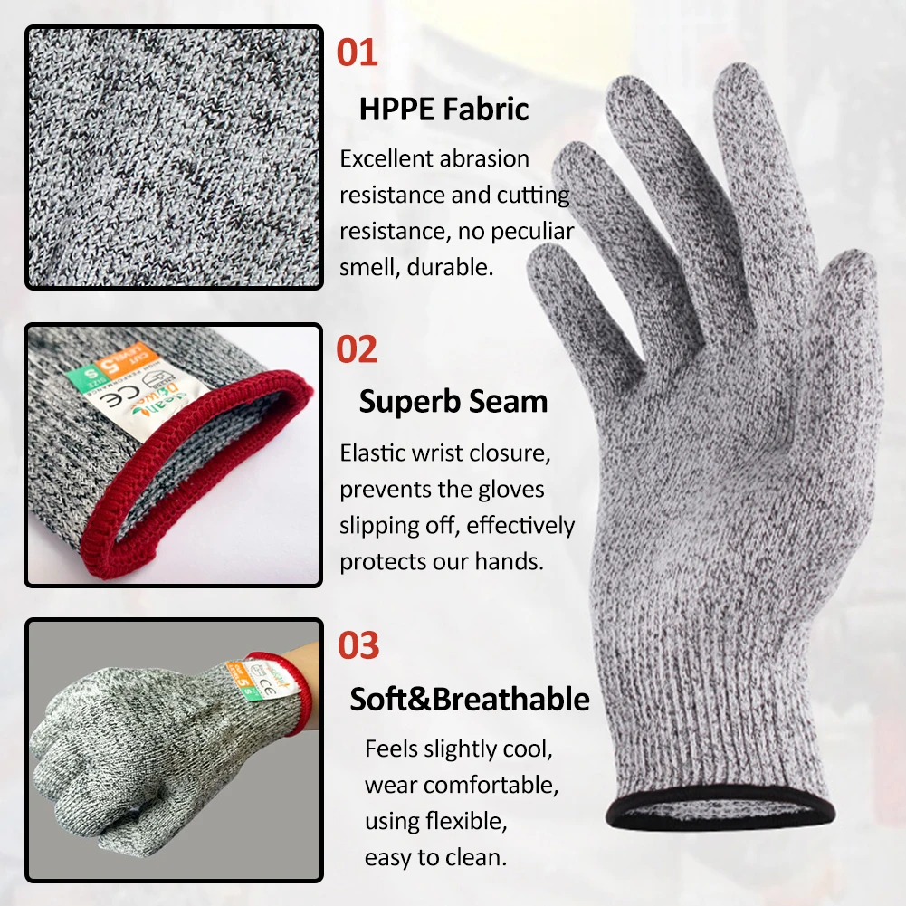 • Устойчивость к порезам-с самым высоким уровнем устойчивости к порезам материала, отмеченным самым высоким, соответствует стандарту EN388, уровень устойчивости к порезам 5.