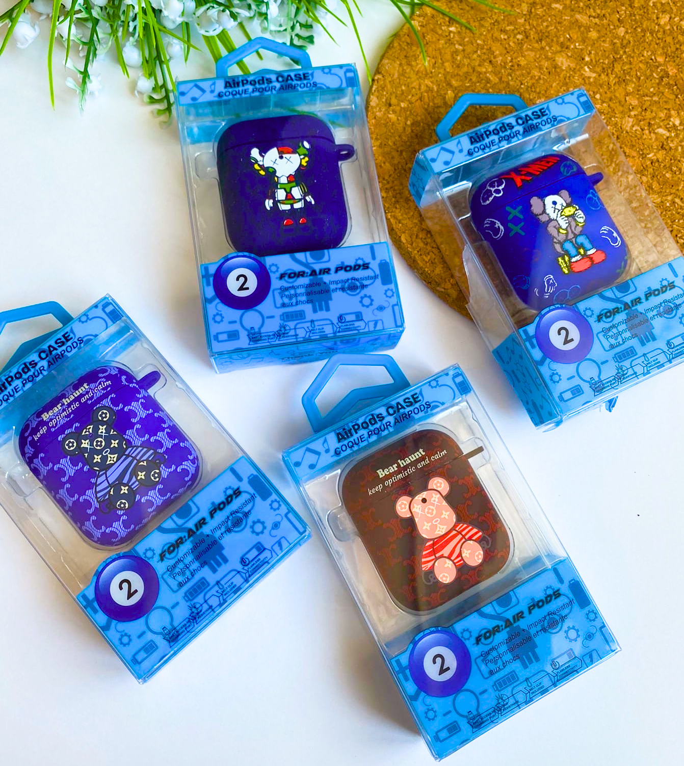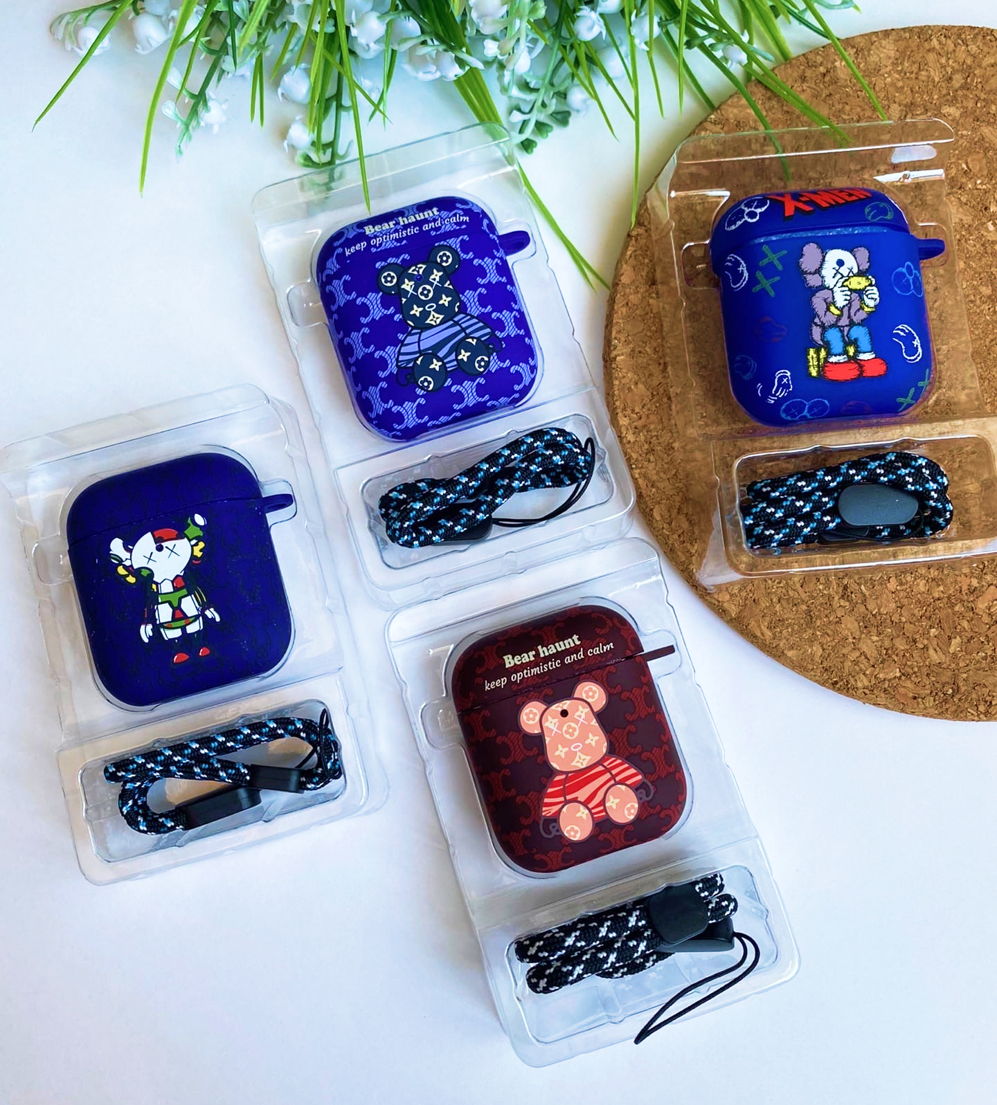Защитный чехол для AirPods 1/2 Luxo с рисунком от Kaws , светится в темноте , покрытие Soft touch , со шнурком черный
