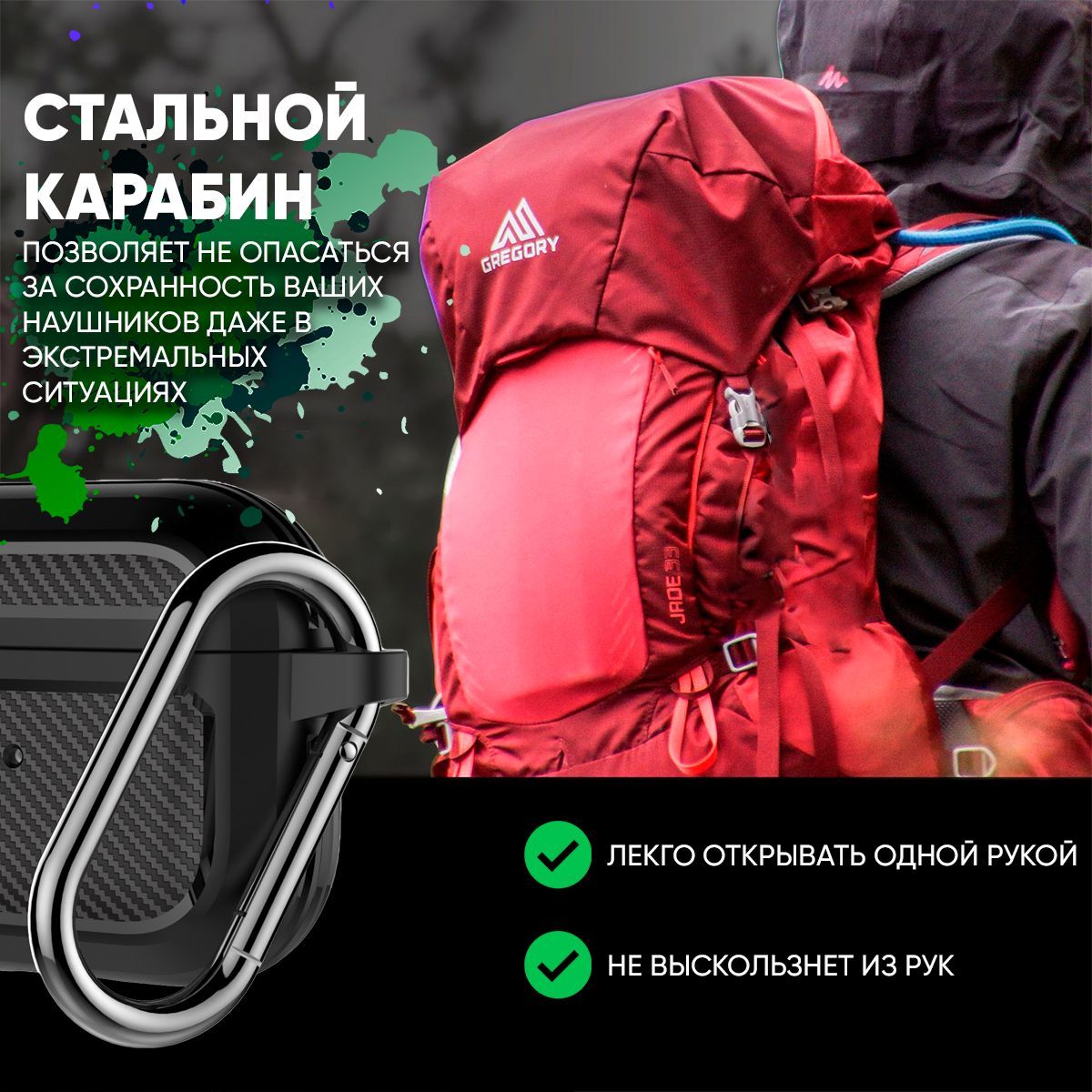Особенности: Карабин для переноски, Покрытие soft-touch, Противоударный, Ребристая поверхность по бокам чехла