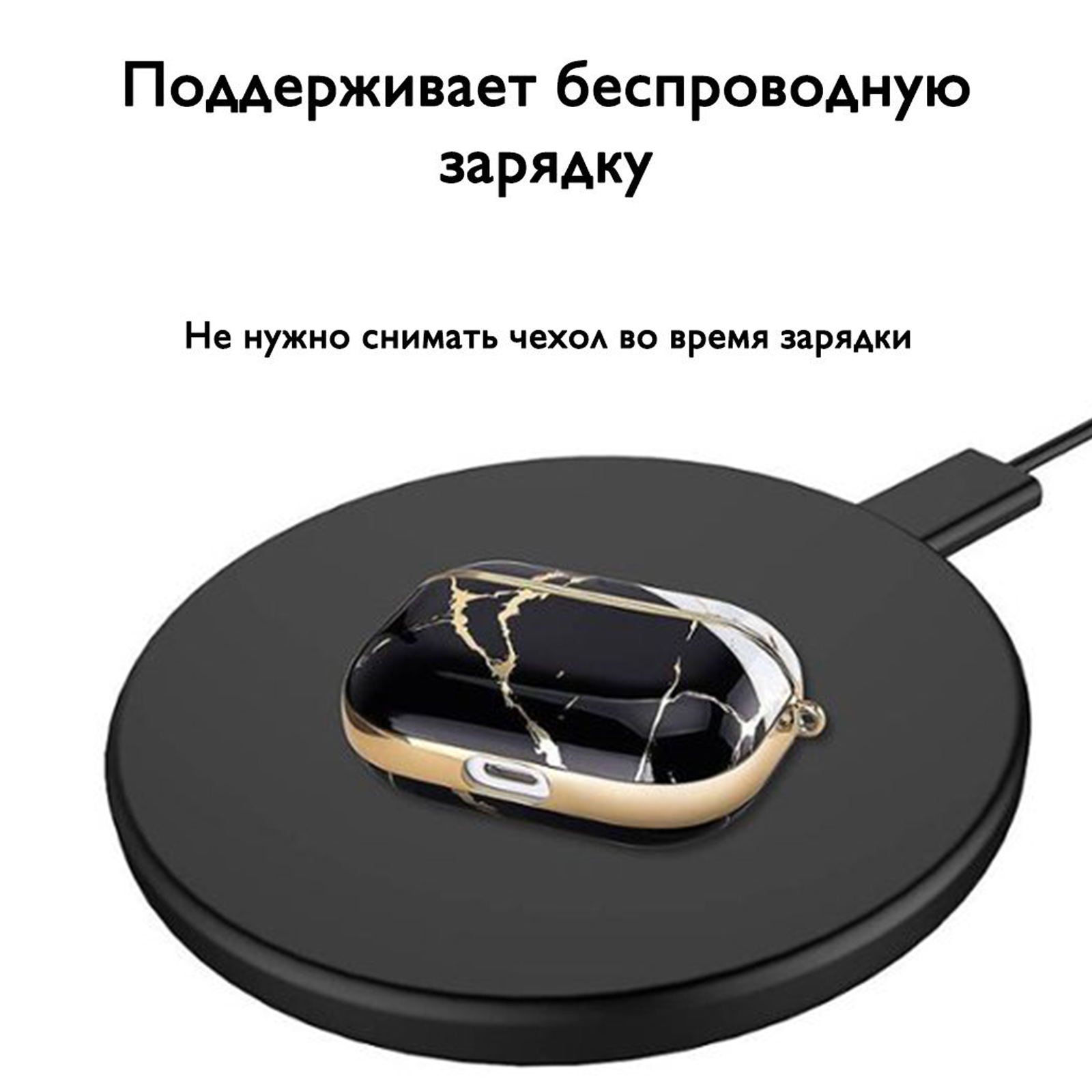Текст при отключенной в браузере загрузке изображенийЭргономичное использованиеЧехол поддерживает беспроводную зарядку, но также предусмотрена прорезь для кабеля. Поэтому Вы будете экономить время и силы, заряжая беспроводные наушники не снимая чехол.