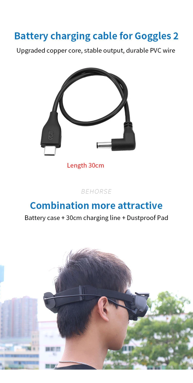 3. Кабель питания соединяет батарею для очков Avata 2, Повесьте батарею на повязку с помощью кронштейна, это хороший способ зарядить очки и увеличить время игры, освободите больше места и подарите вам ощущение комфорта при полете.