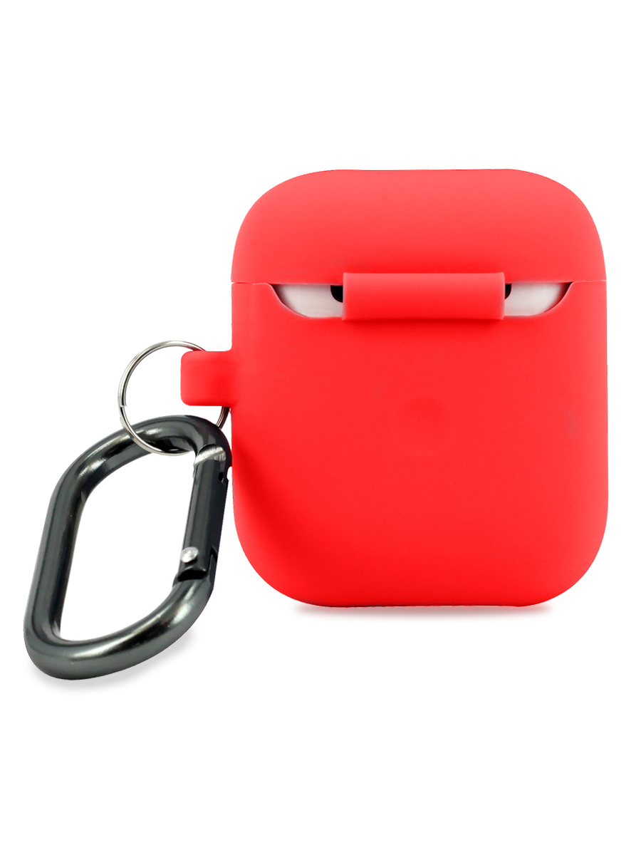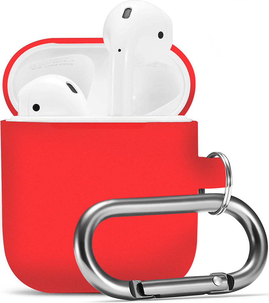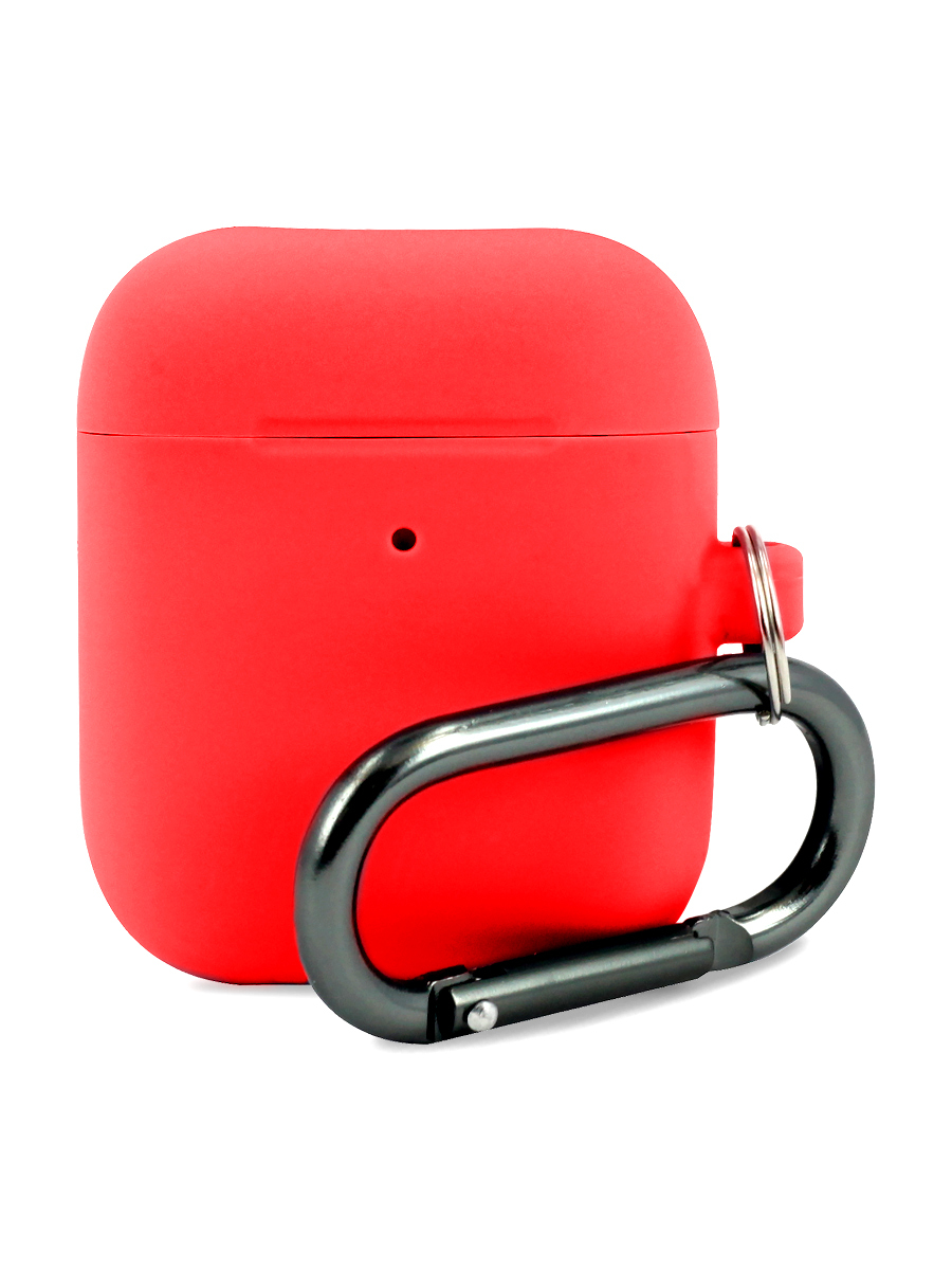 Защитный чехол для наушников Apple Airpods 1 и Airpods 2 / Силиконовый чехол для наушников на Эпл Аирподс 1 и Аирподс 2 с карабином / Кейс для наушников, Красный