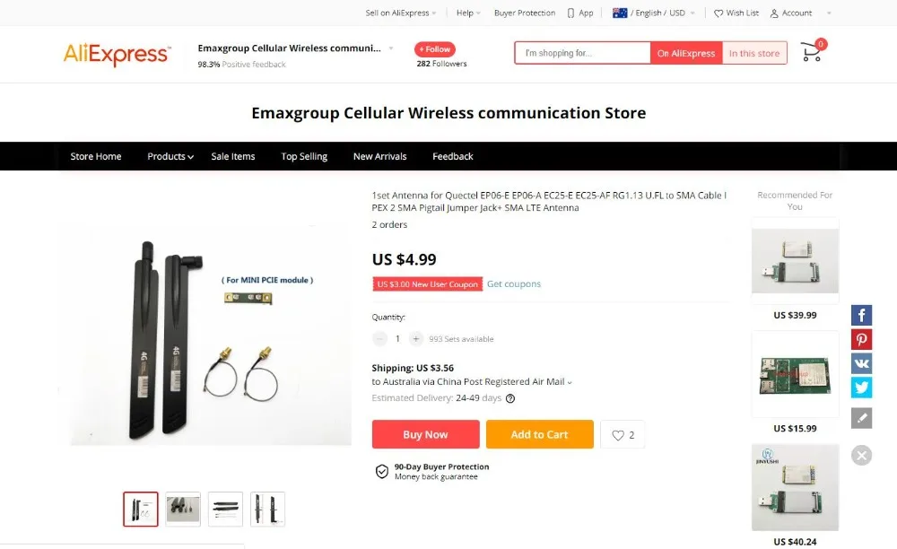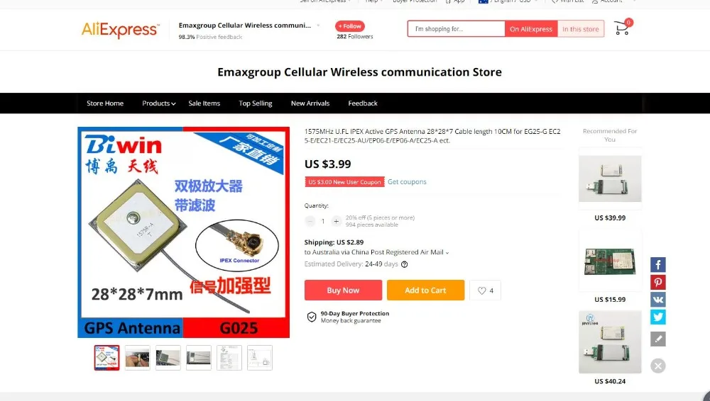 Если вы хотите купить антенну GPS для EP06-E. Пожалуйста, используйте ссылку ниже