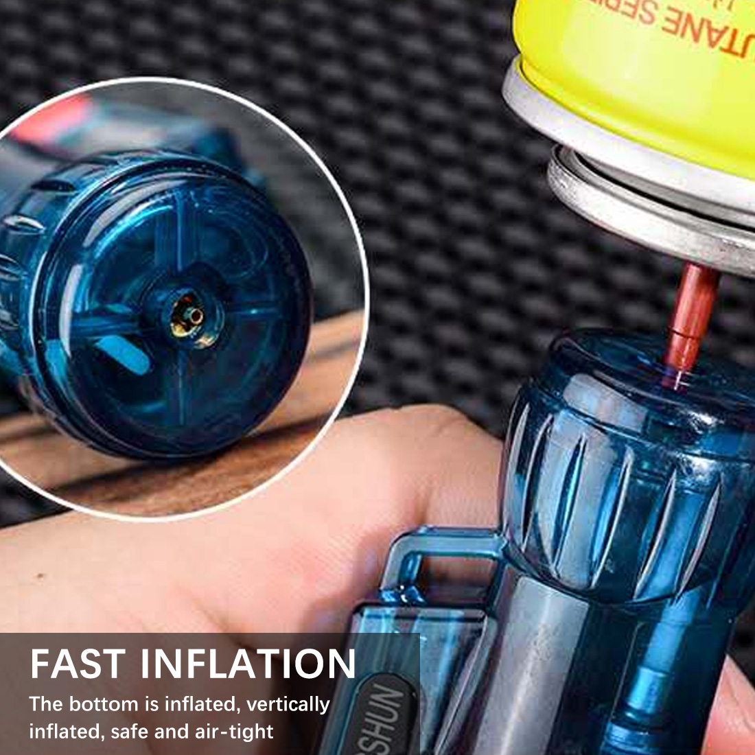 • Надувная конструкция с рециркуляцией бутанового газа, большей защитой окружающей среды и экономией денег.