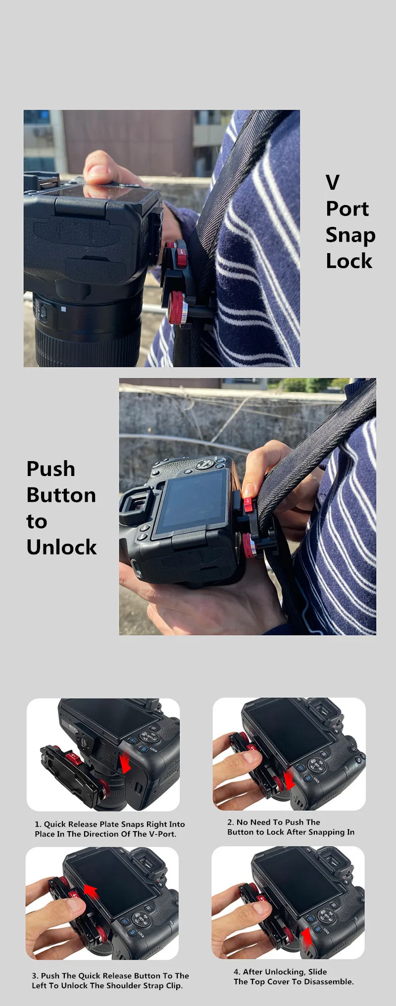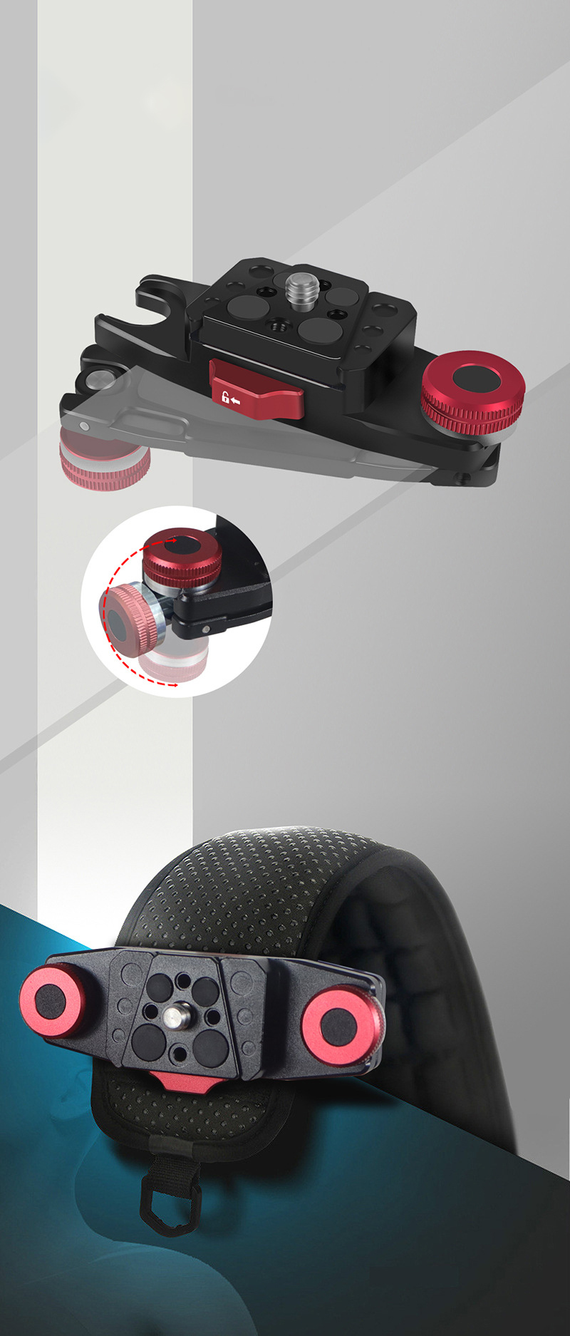 3. Быстросъемная скользящая пластина V-порта, нажмите вниз-быстро Разблокируйте камеру, безопасно и стабильно.