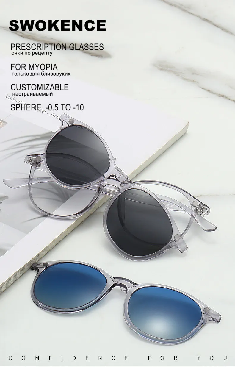 Зажим для солнцезащитных очков и очки для близорукости для сферы от -0,5 до -10 для мужчин и женщин прозрачная оправа очки по рецепту для близорукости или астигматизма F588