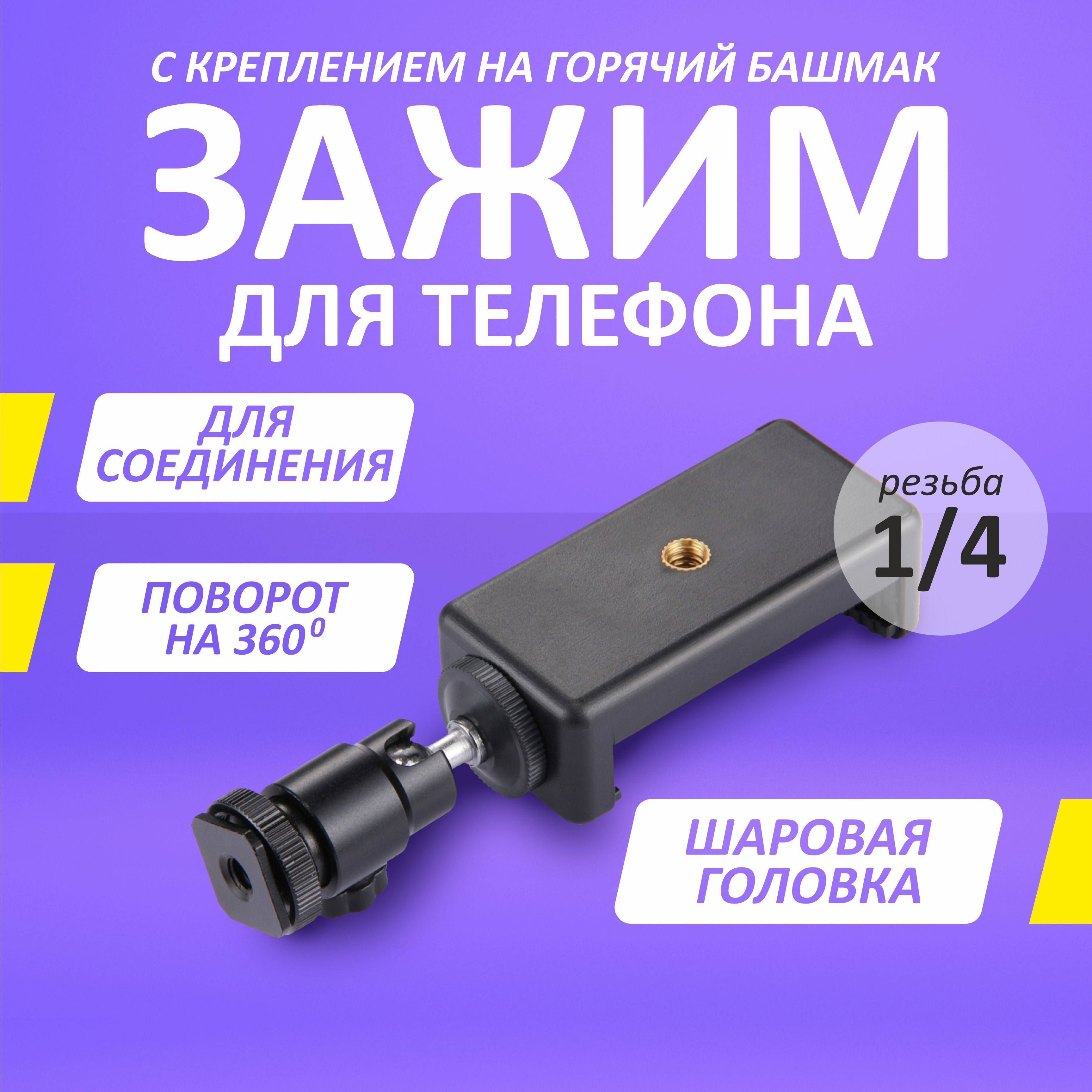 Зажим для телефона с креплением на горячий башмак вспышки или 1/4"