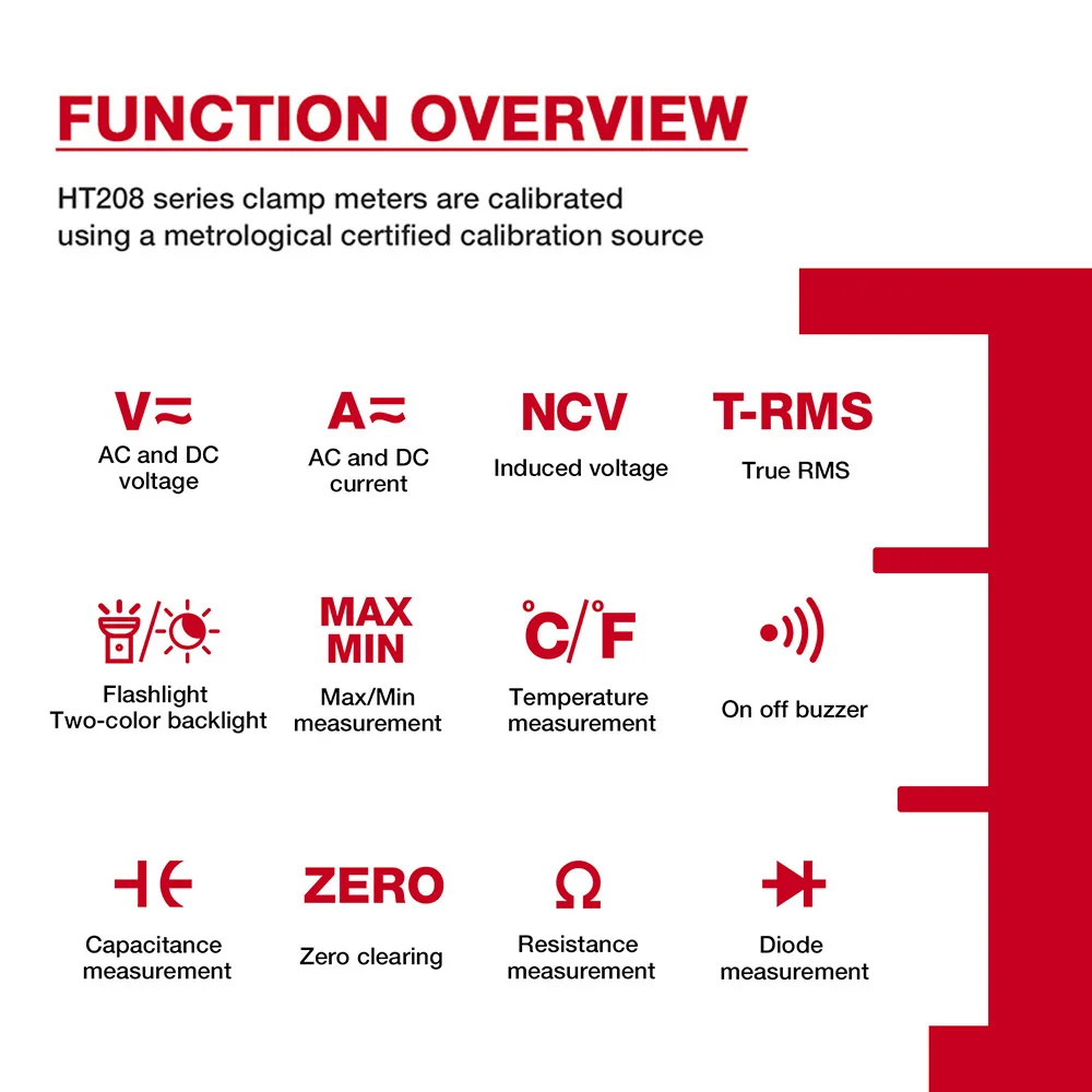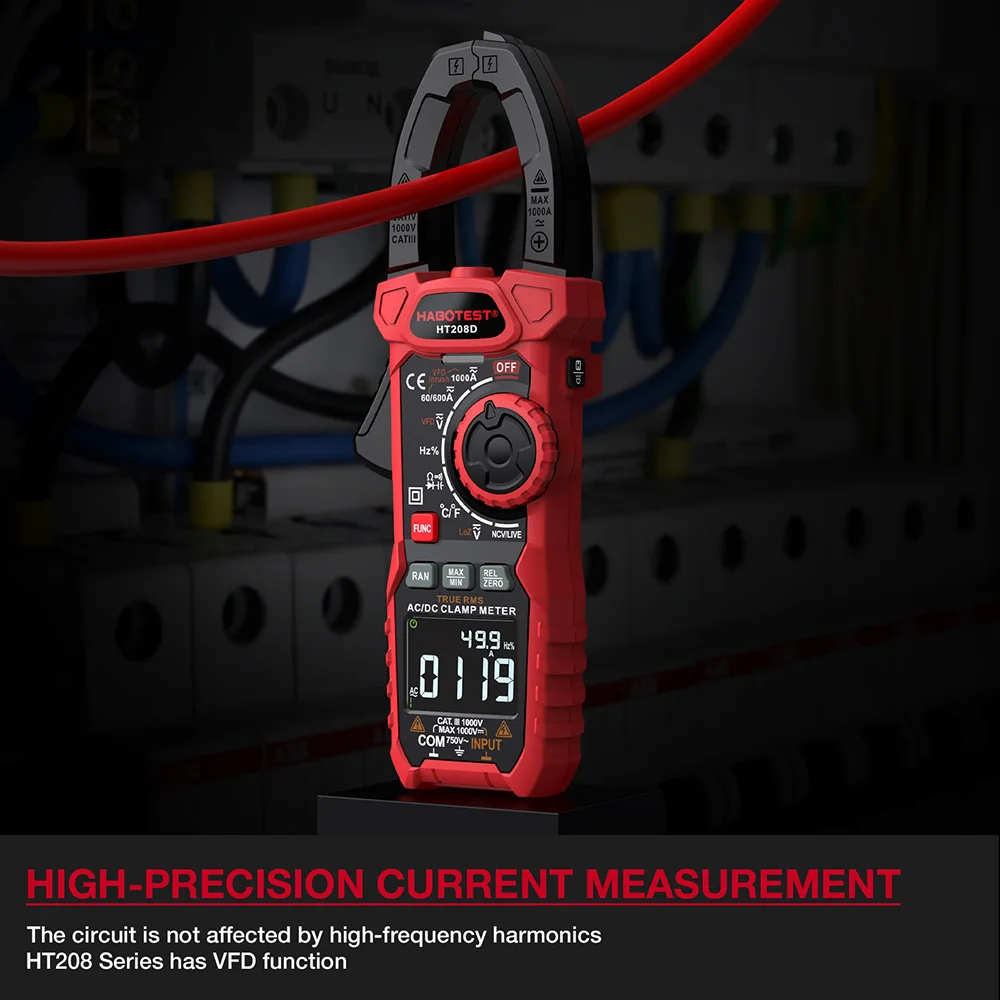 Зажим-тестер HABOTEST HT208, 1000A, 1000 В, AC/DC, True RMS, цифровой токоизмеритель емкости, температуры, Ом, Гц