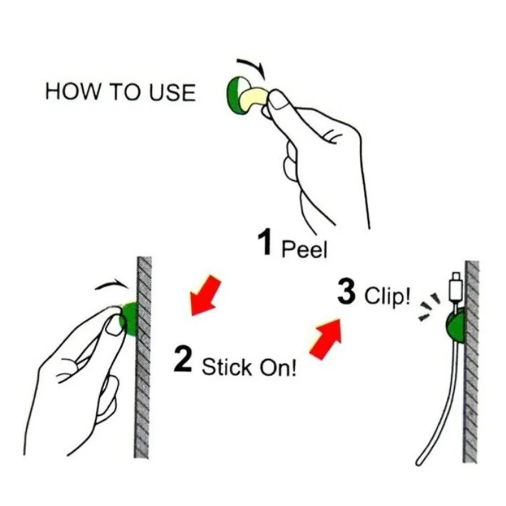 5. Простота установки: Оторвите защитную пленку, прикрепите Кабельный органайзер и вытяните воздух от контактных поверхностей. Подходит для различных гладких поверхностей, таких как плитка, сталь, стекло, зеркала, окрашенная древесина.