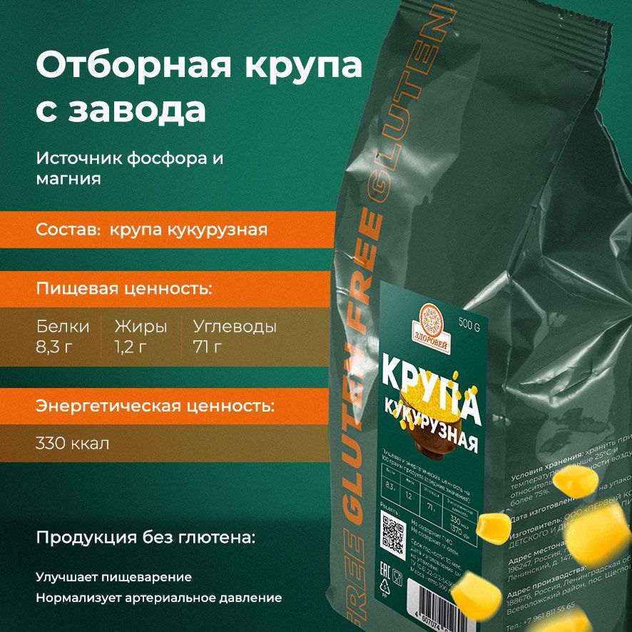 ЗДОРОВЕЙ Крупа кукурузная без глютена 5 шт. по 500 гр.