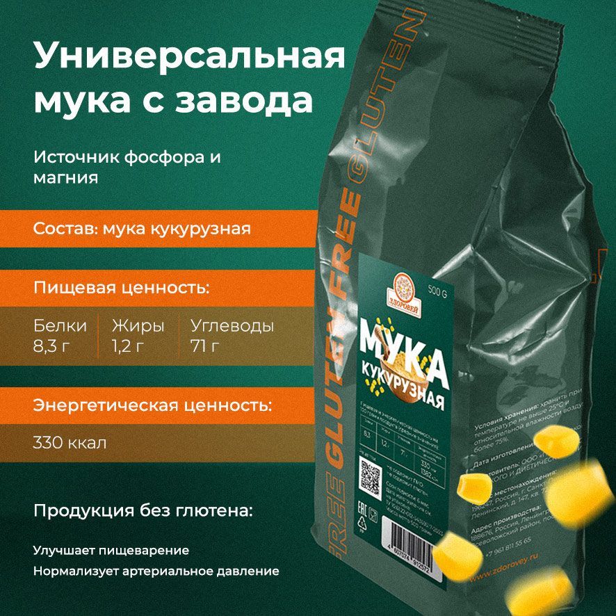 ЗДОРОВЕЙ НАБОР мука, 3 вида, без глютена 5 шт. по 500 гр. (кукурузная 2шт., рисовая-1 шт., из зеленой гречки - 2 шт.