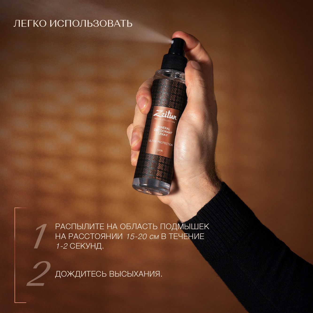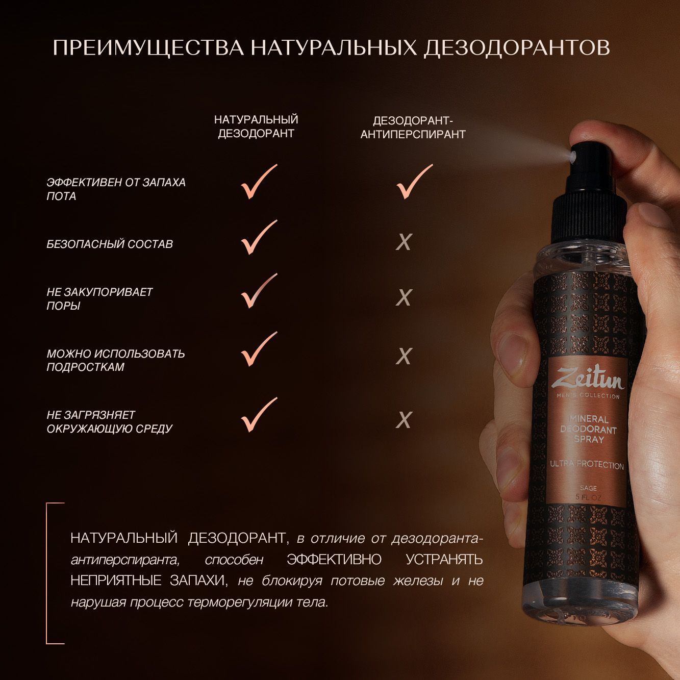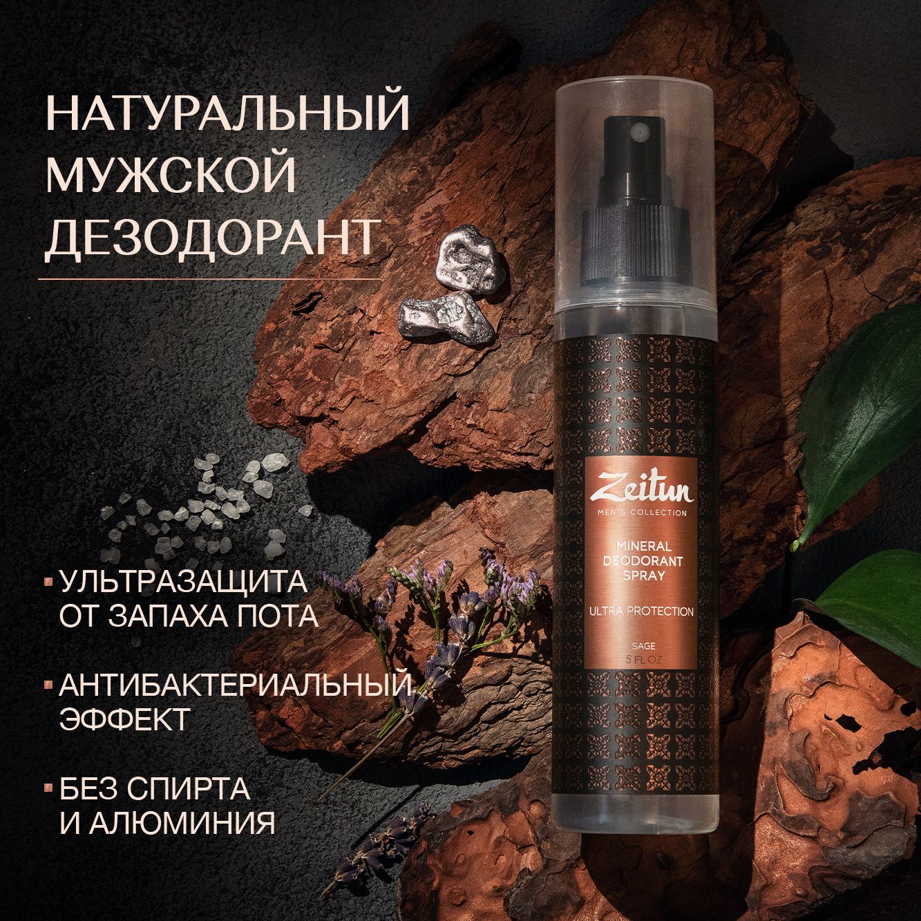 Zeitun Дезодорант спрей мужской натуральный минеральный, антибактериальный с квасцами, без алюминия "Шалфей" без следов на одежде150 мл