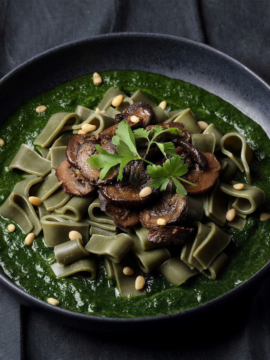 Описание: Необычные зеленые макароны, украсят ваш стол и добавят разнообразия. Папарделле со спирулиной и шпинатом, удивят и порадуют своим вкусом и внешним видом.