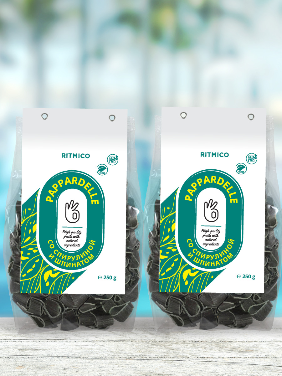 Зеленые макароны Папарделле со шпинатом и спирулиной. Две пачки по 250 г. Плоские макароны Pappardelle.
