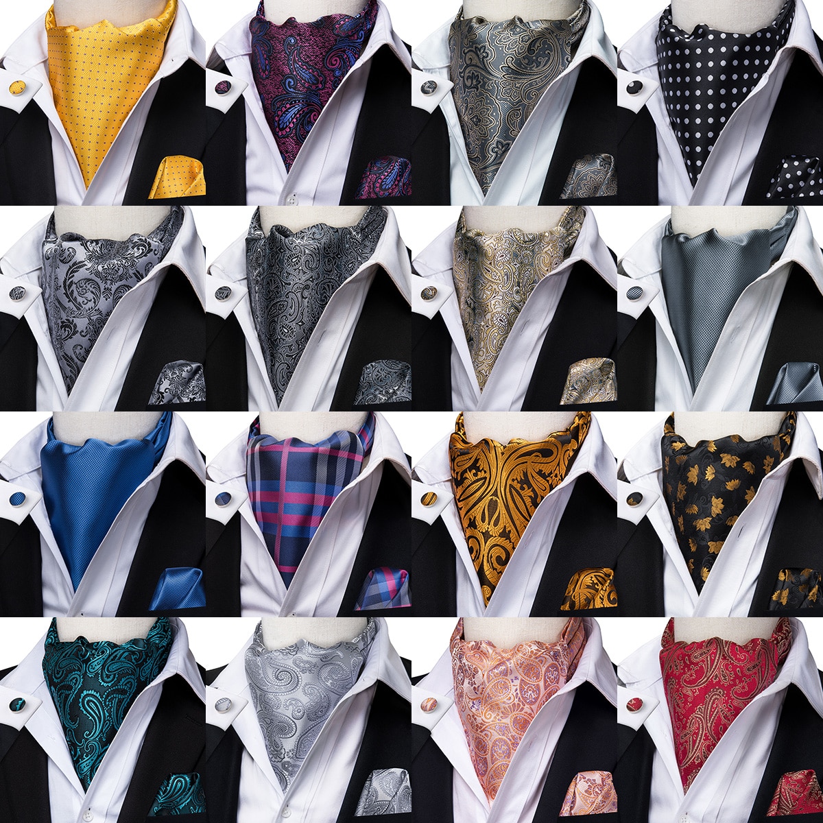 Зелёные твёрдые Шелковый Аскот галстук Резинки для волос, Self британский стиль джентльмен платье шарфы галстуки Свадебная вечеринка носовой платок Ascot комплект Hi-галстуком-бабочкой