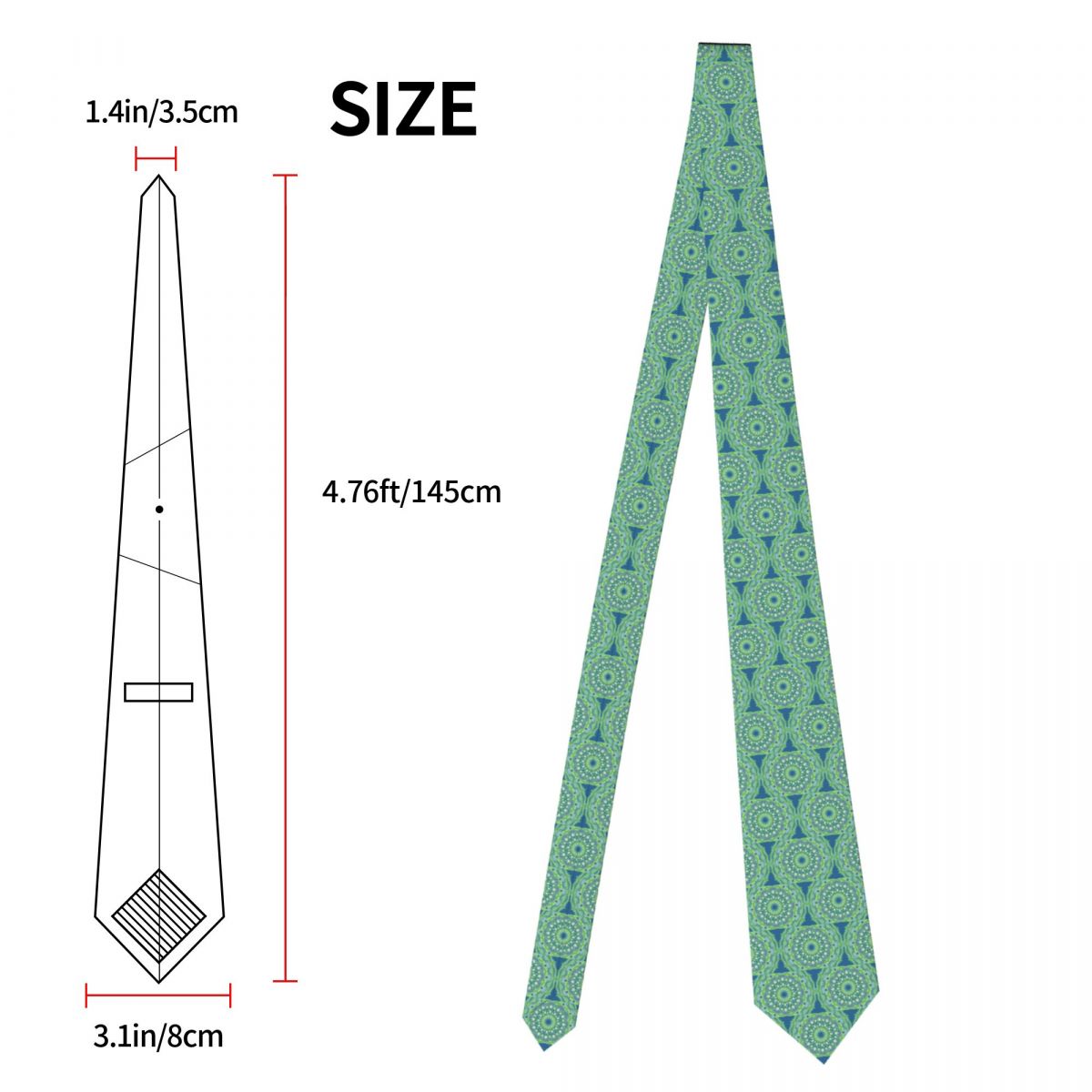 Зеленый белый галстук Мандала сглаза Галстуки хип-хоп Уличный галстук деловой галстук полиэстер