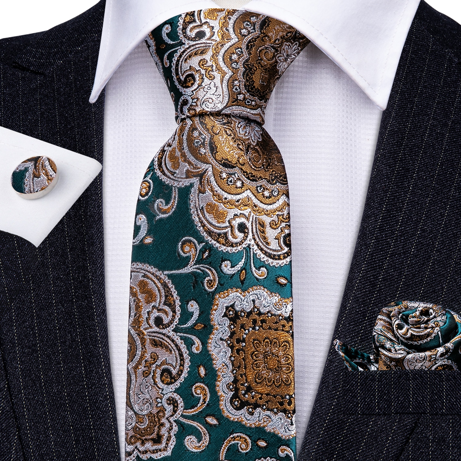 Зеленый цветочный мужской галстук в стиле ретро, Шелковый жаккардовый галстук, Свадебный деловой платок, запонки, галстук, дизайнерский галстук Barry.Wang