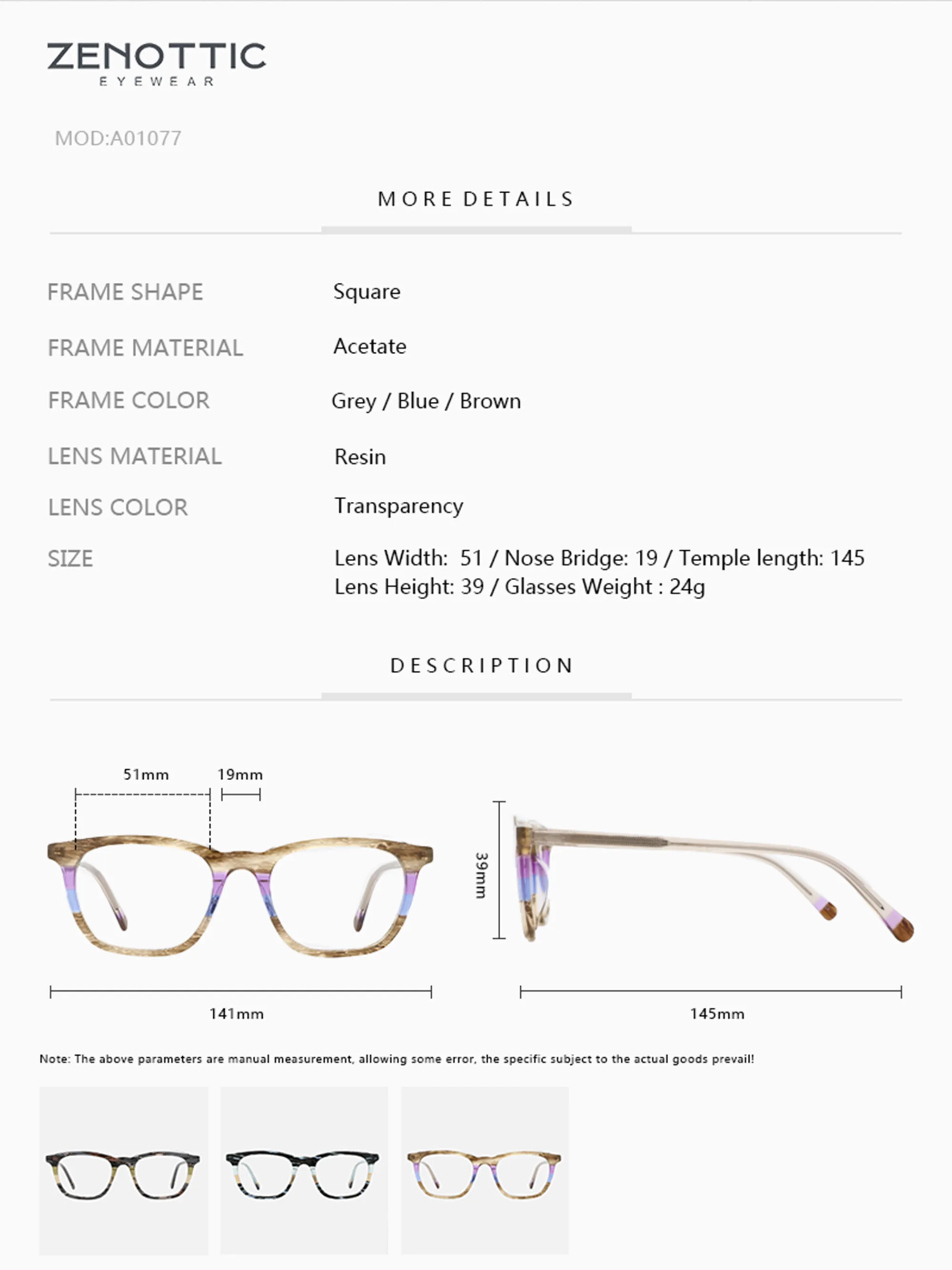 ZENOTTIC 2023 классические мужские ацетатные оптические очки в оправе с квадратным принтом очки без рецепта прозрачные линзы очки A01077