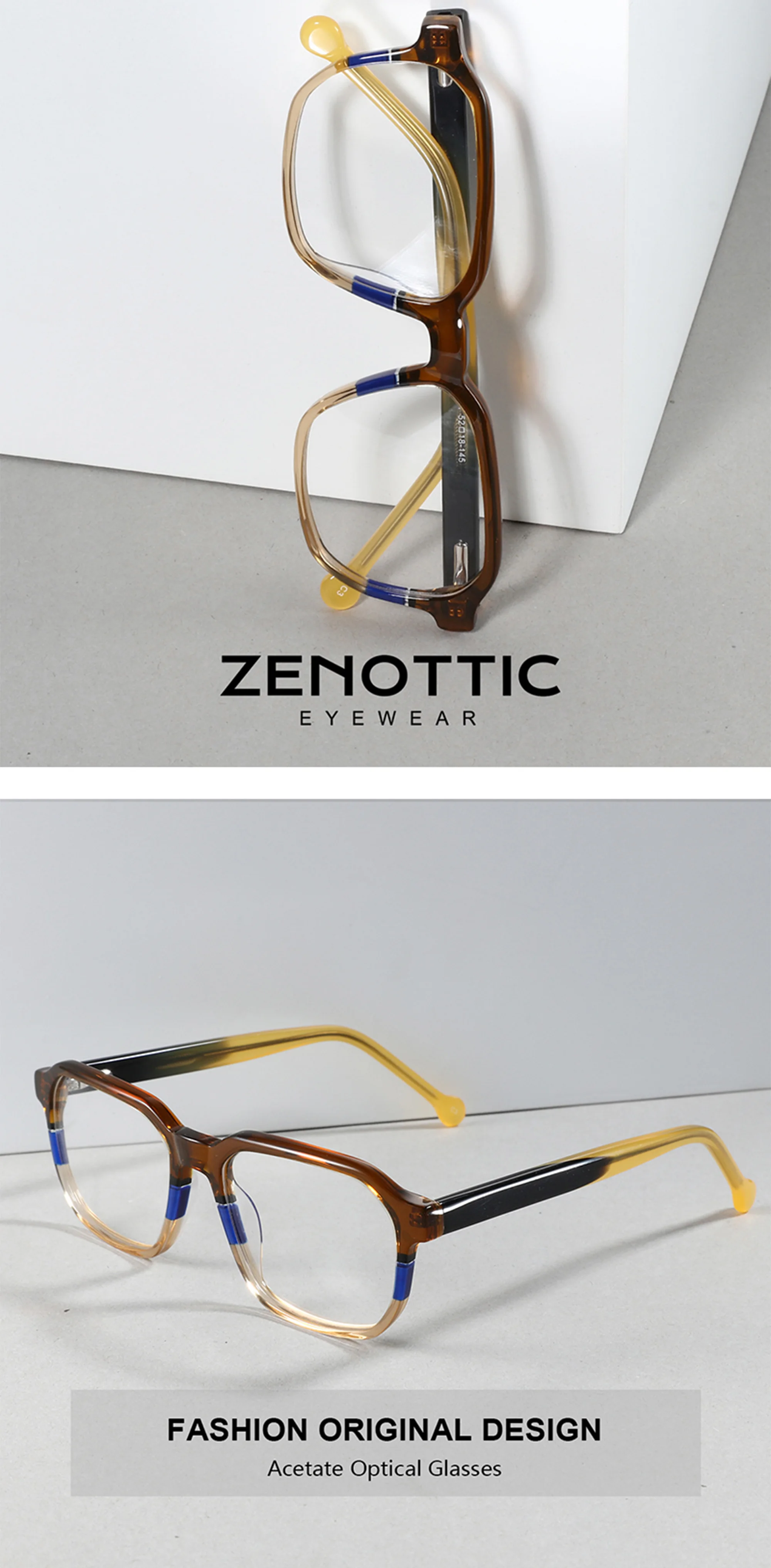 ZENOTTIC Новинка 2023, высокое качество, ацетат, оптические очки, оправа для мужчин, синий квадрат, без рецепта, прозрачные линзы, очки A01061