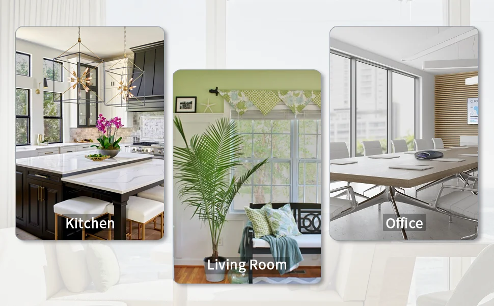 Многофункциональность: подходящий оттенок окна дома, работает как занавес конфиденциальности в дневное время, также он может блокировать раздражающие блики и отклонять УФ, чтобы уменьшить выцветание; Защищает внутреннюю мебель. Широко используется в столовой, жилых, спальных, офисных и т. Д.