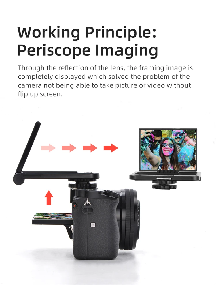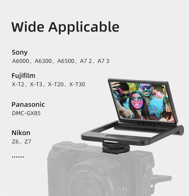 • Специально разработанный для DSLR и беззеркальной камеры, отличное и легкое решение при съемке селфи или съемке без экрана откидной камеры.