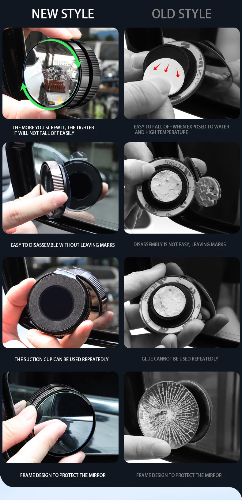 Зеркало для слепых зон автомобильное, 2 шт., с присоской, углом обзора 360 градусов
