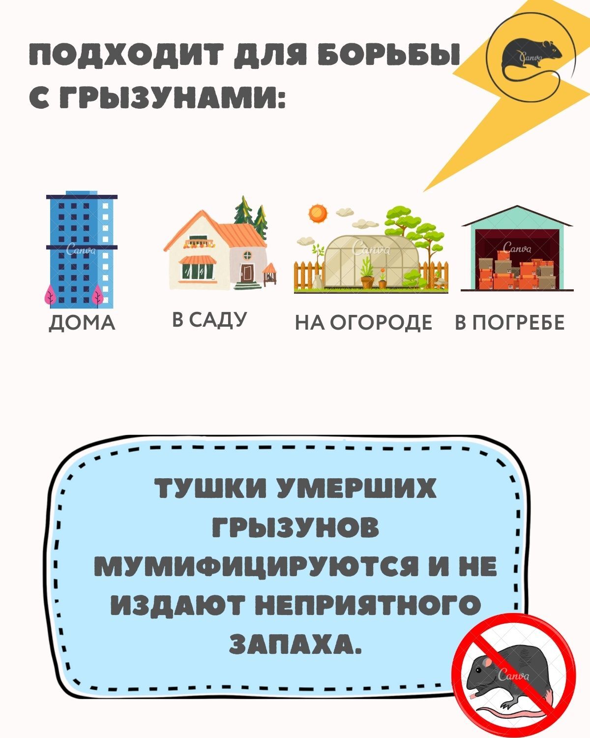 Тушки умерших грызунов мумифицируются и не издают неприятного запаха.