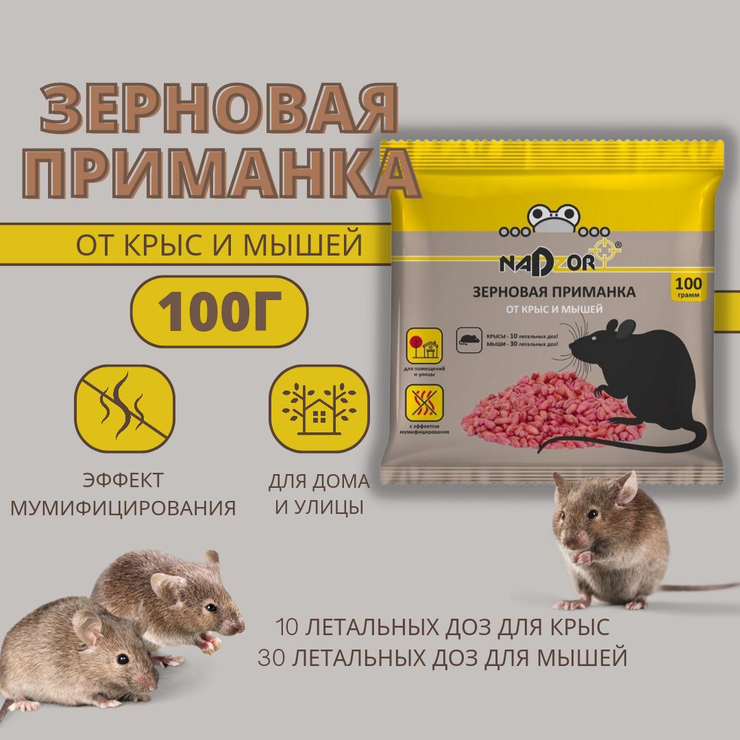 Зерновая приманка от крыс и мышей, 100 г / Приманка от грызунов в удобной форме / Nadzor