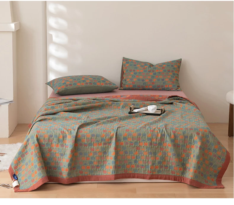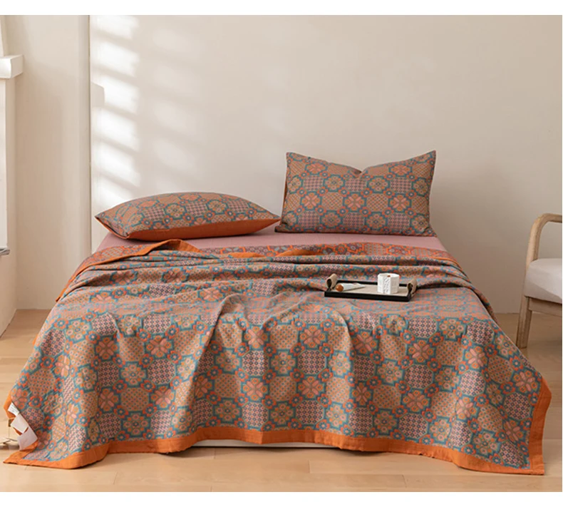 Жаккардовое двустороннее покрывало для кровати, полиэстер /хлопок, размеры и рисунки в ассортименте
