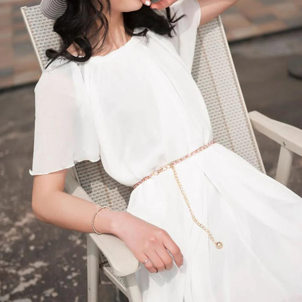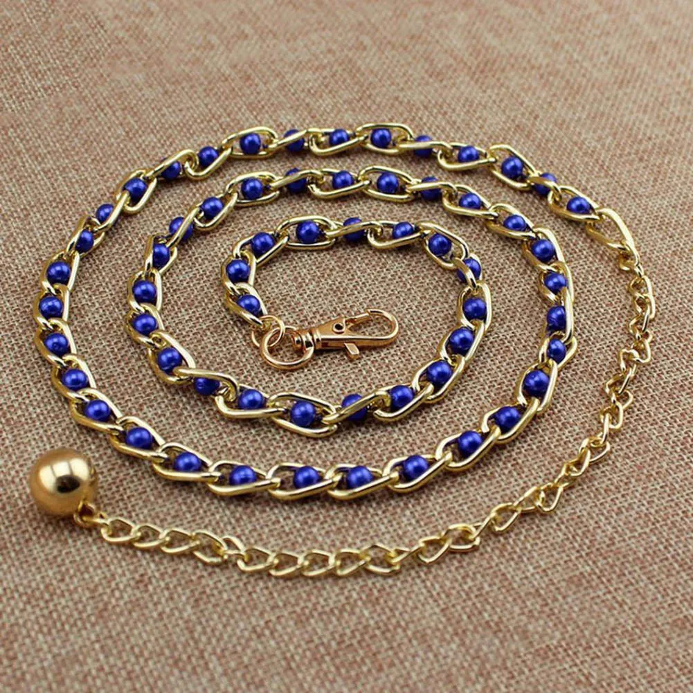 Женщины Девушки Металл Пояс Тела Цепи Имитация Жемчужные Бусины Платье Цепной Пояс