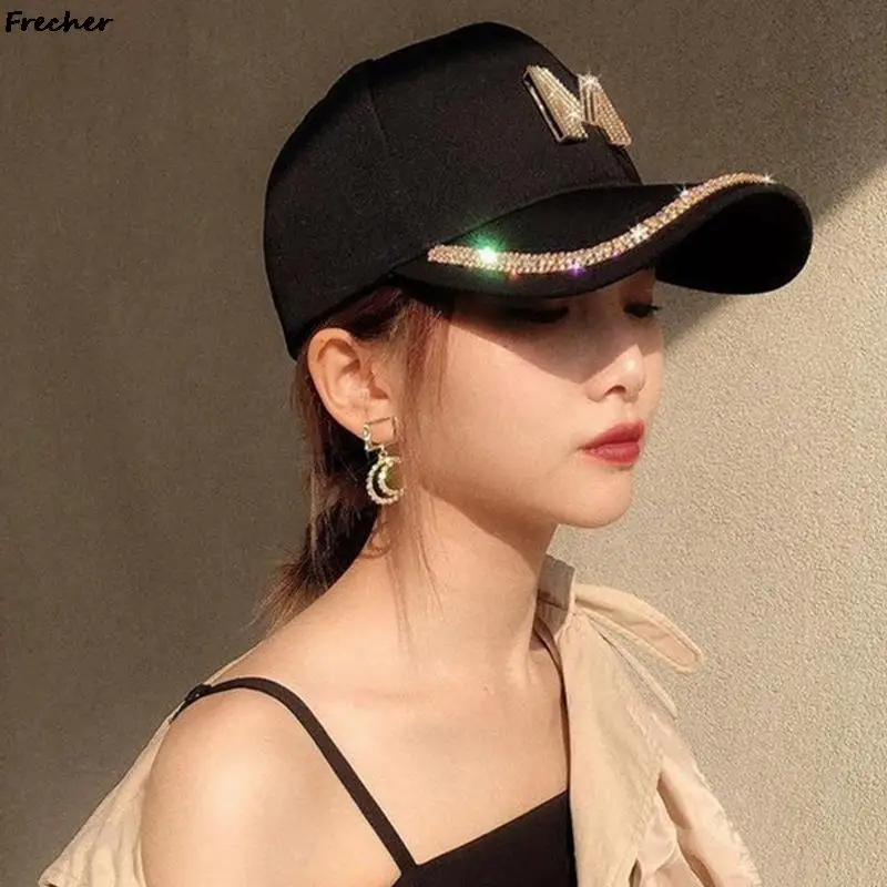 Женская Блестящая Кепка в стиле хип-хоп с бриллиантами и надписью м