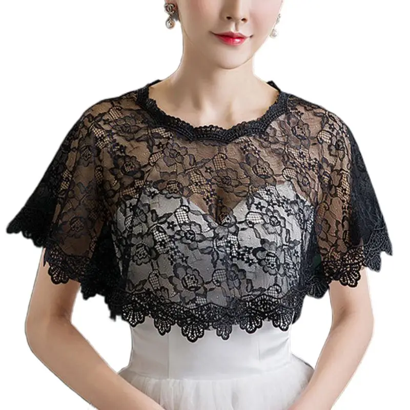 Женская кружевная накидка с цветочной вышивкой, накидка для свадебных торжеств, пуловер с поднятыми плечами, вечерние накидки для выпускного вечера, Прямая поставка