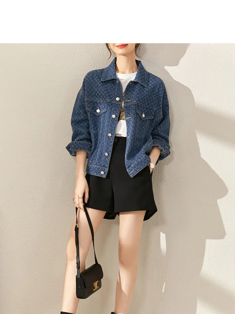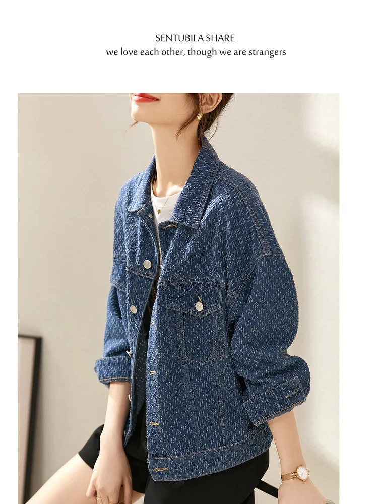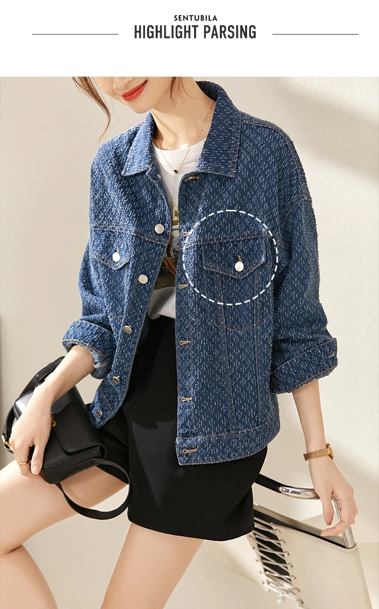 Женская джинсовая куртка с отложным воротником и длинным рукавом