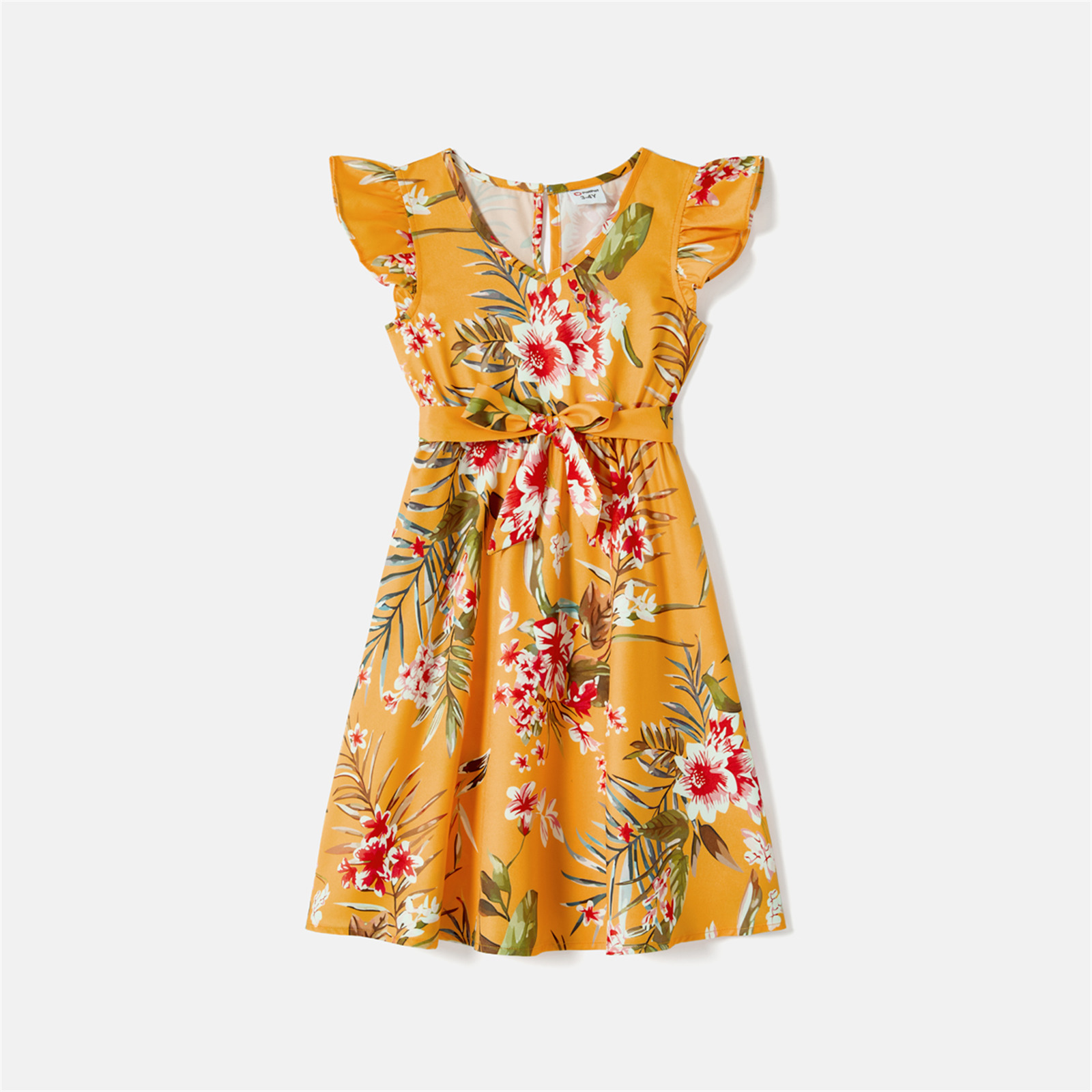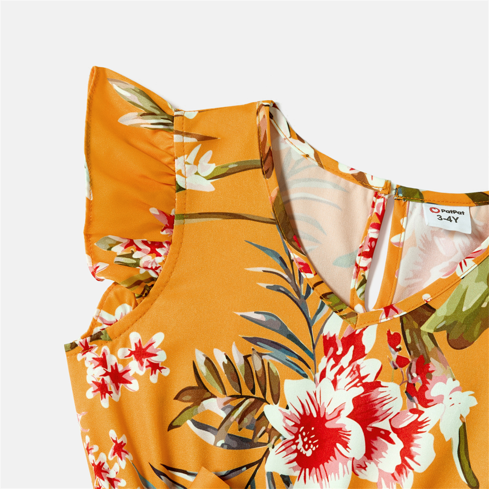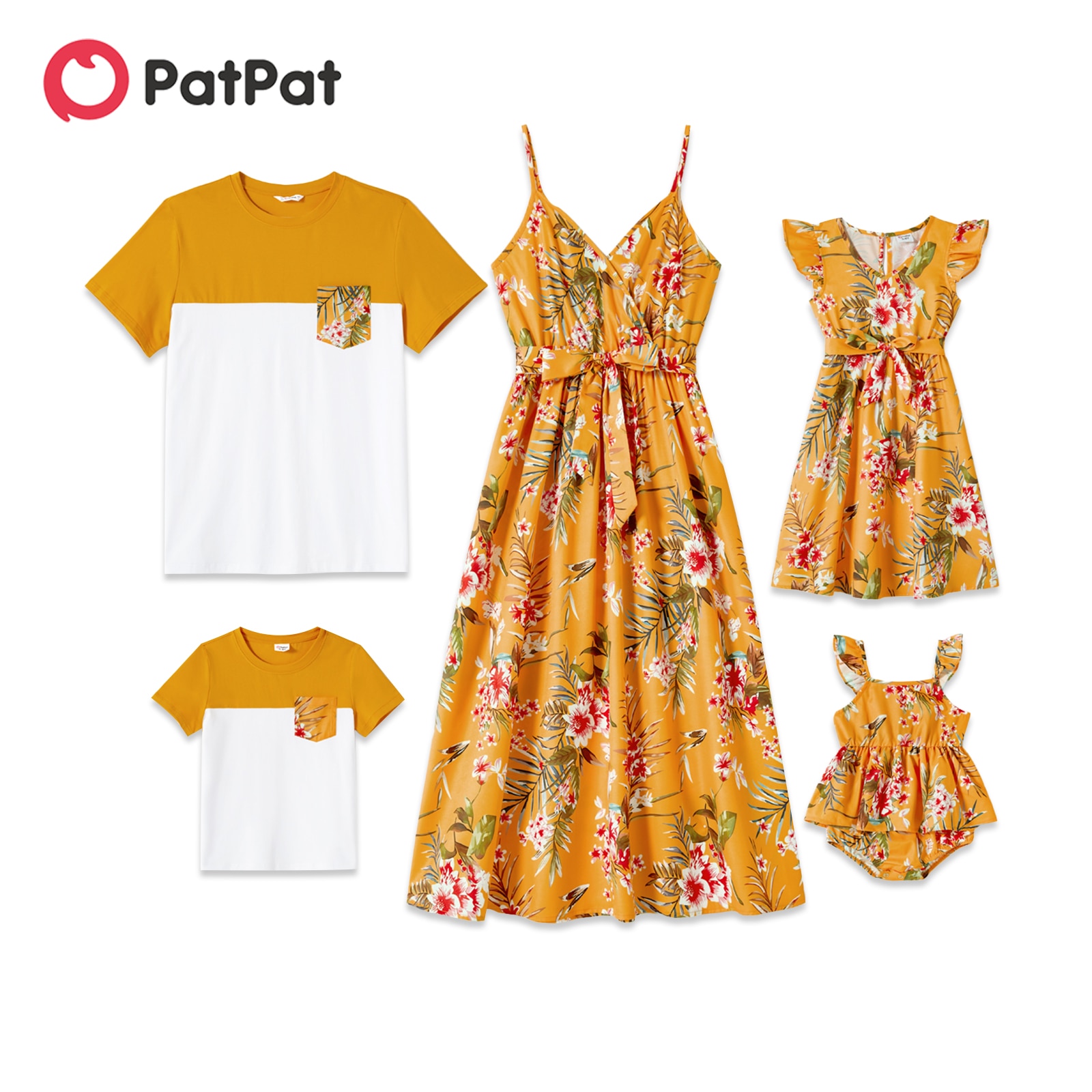 PatPat/одинаковые хлопковые футболки с короткими рукавами с цветными блоками и платья на бретельках с цветочным принтом