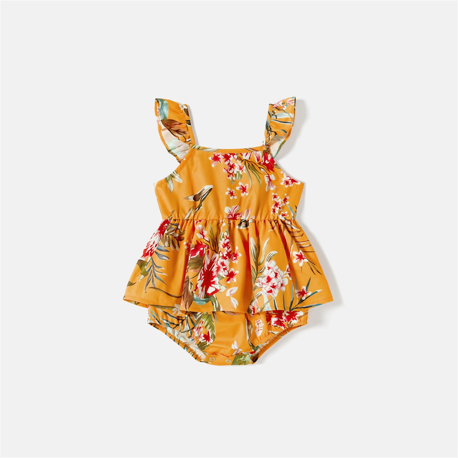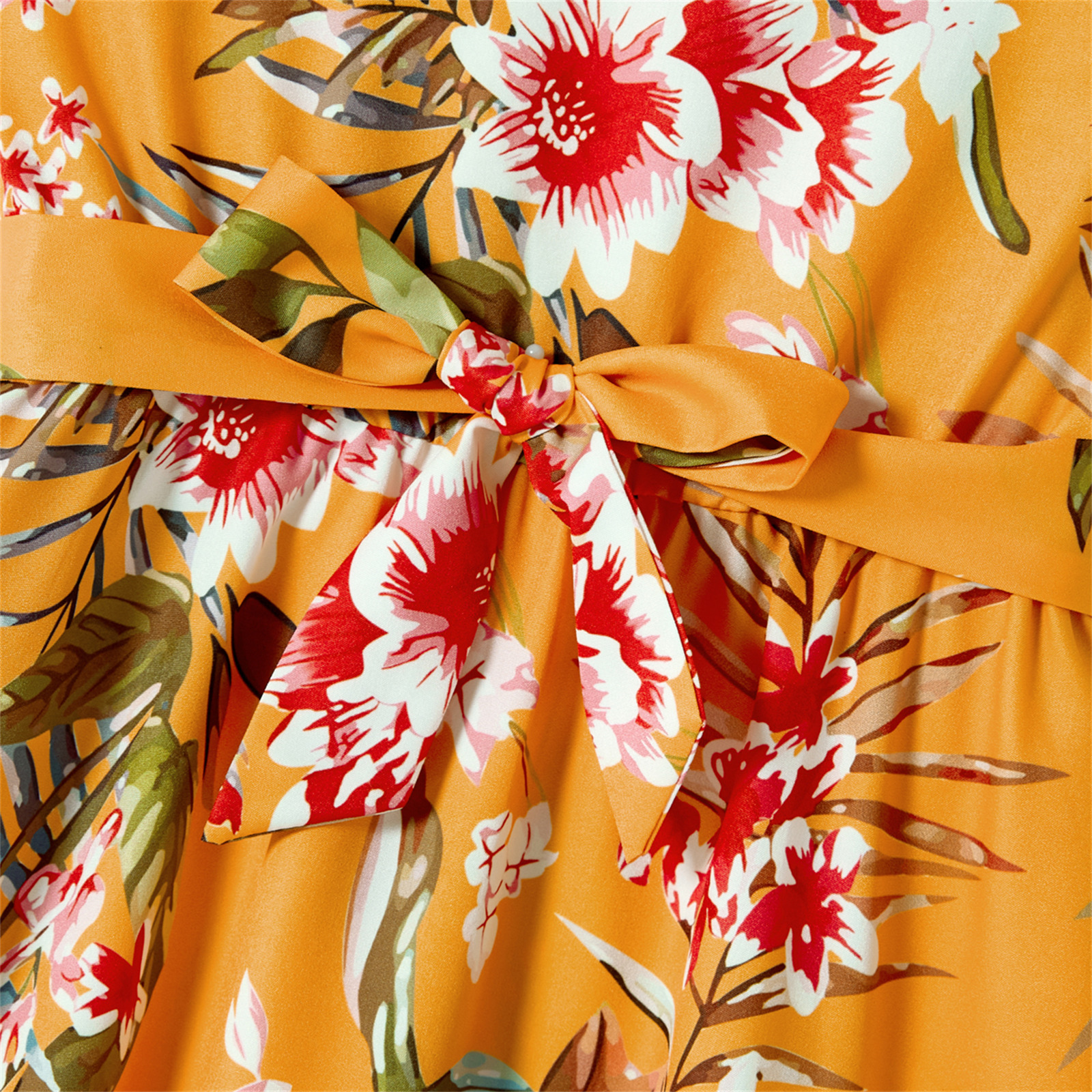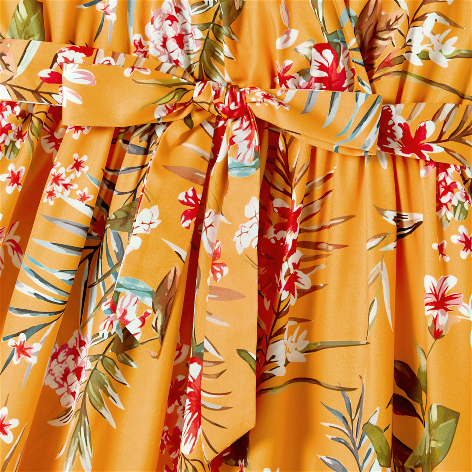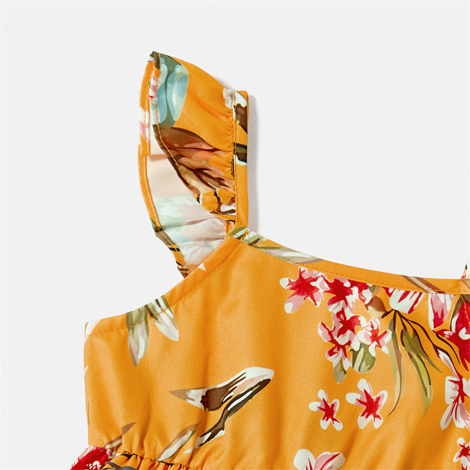 PatPat/одинаковые хлопковые футболки с короткими рукавами с цветными блоками и платья на бретельках с цветочным принтом