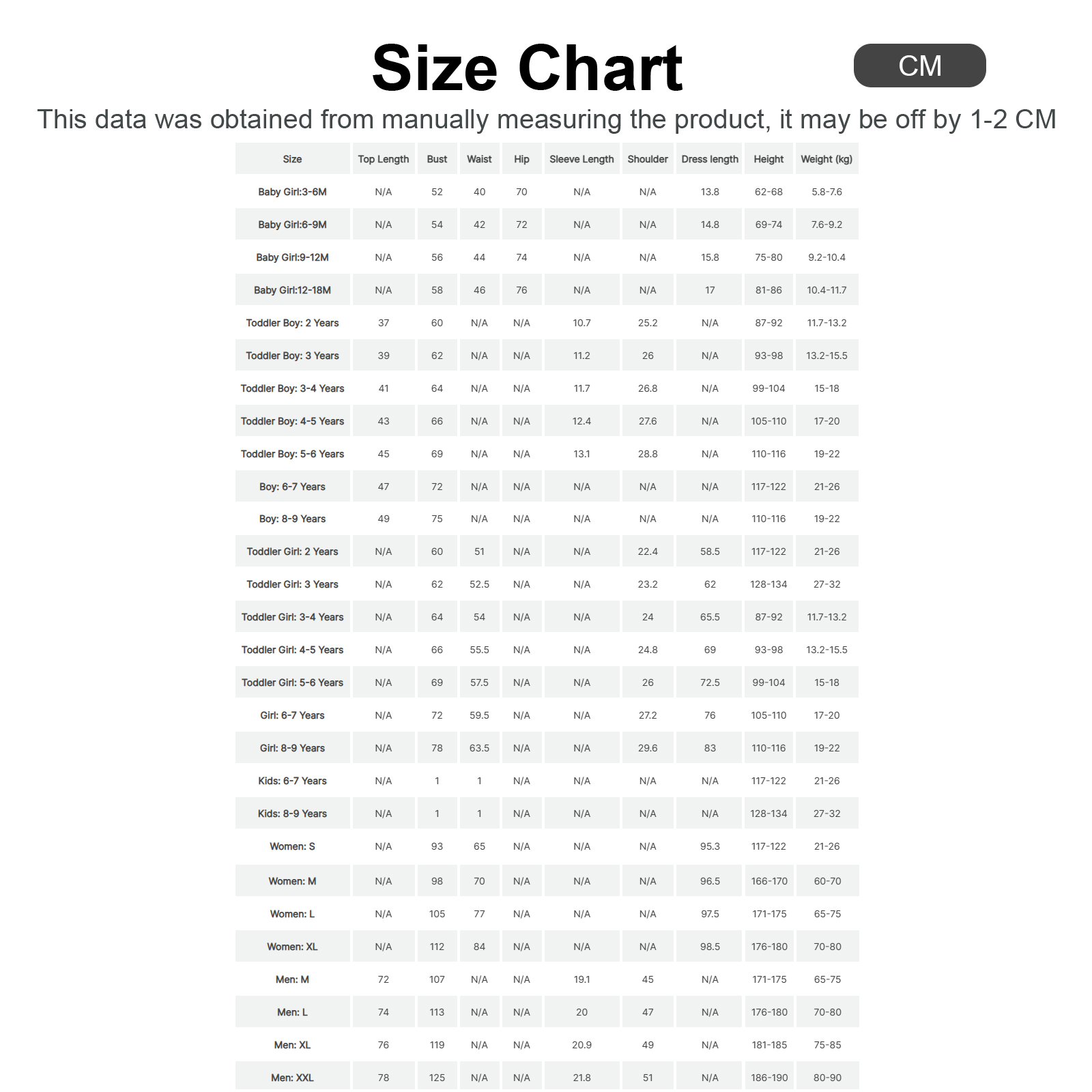 * Каждый размер включает в себя: 1 платье или 1 комбинезон или 1 Топ