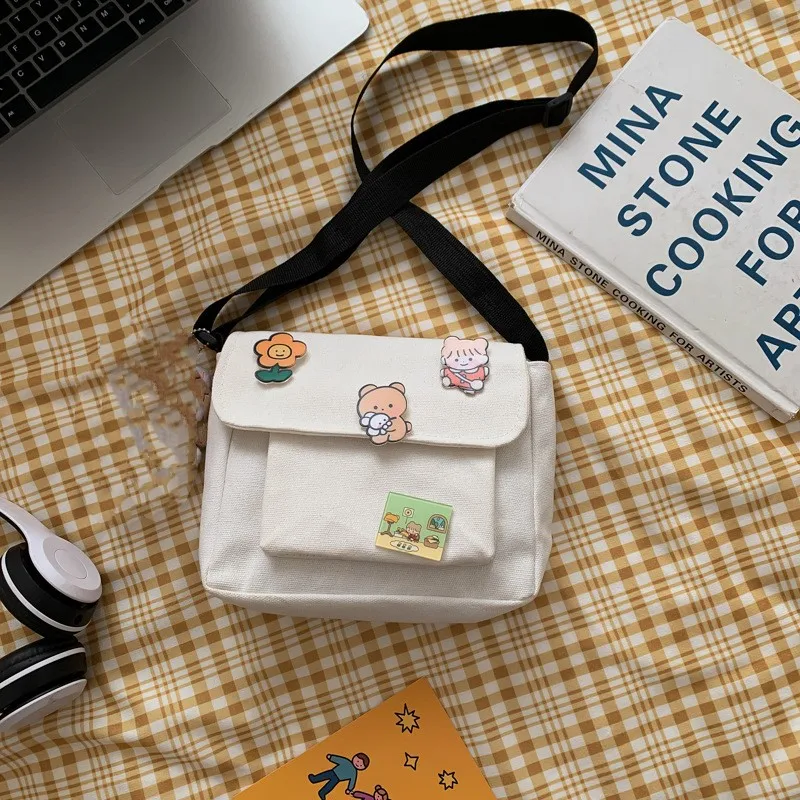 Женская Холщовая Сумка с клапаном, милая маленькая сумка, Повседневная сумка через плечо для девушек, студенток, японская женская сумка, сумка-мессенджер, женская сумка