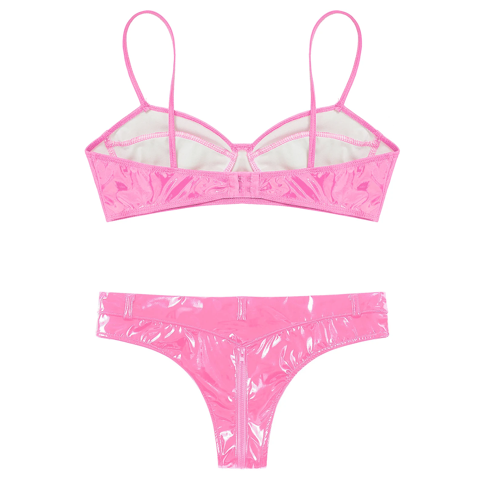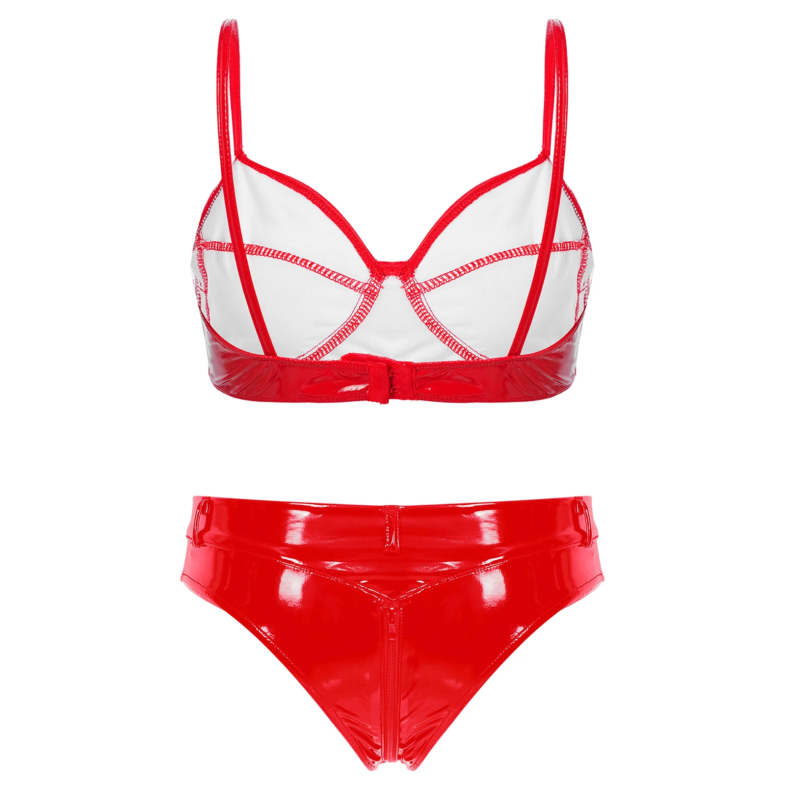 Женский модный мокрый образ женское белье из лакированной кожи Комплект беспроводного бюстгальтера с высоким вырезом спереди на молнии.