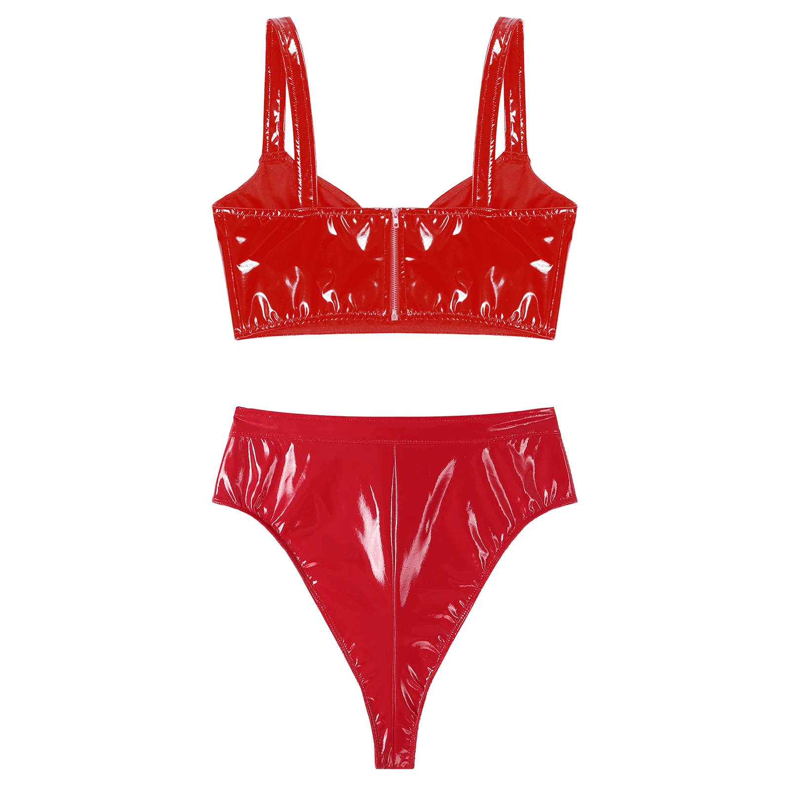 Женская Клубная Одежда для танцев Rave, модный костюм из лакированной кожи для мокрого образа, бюстгальтер без косточек с высоким вырезом и трусики на молнии спереди
