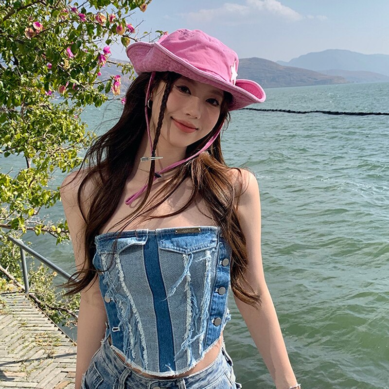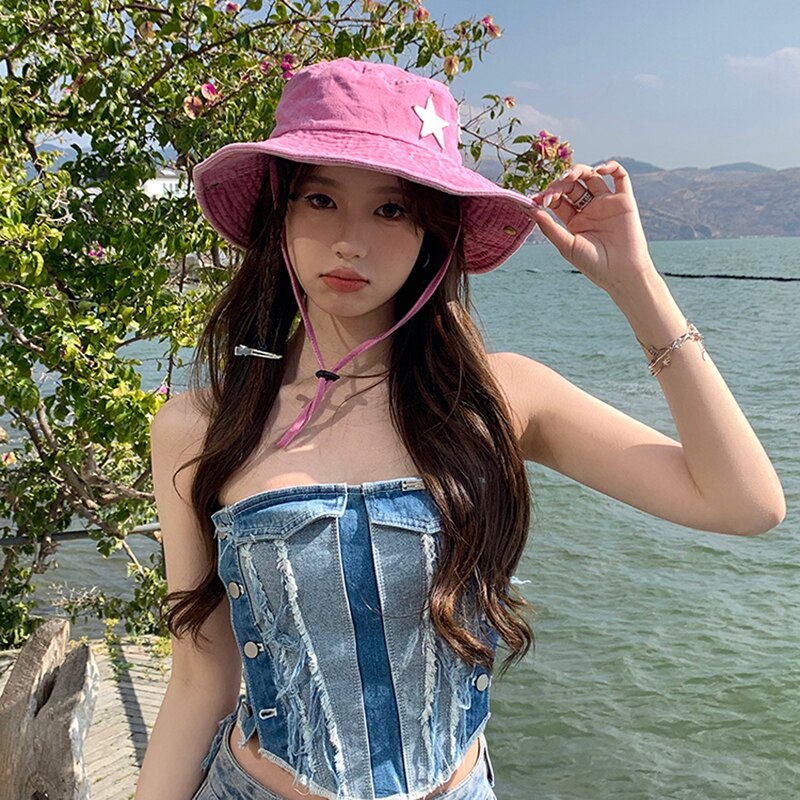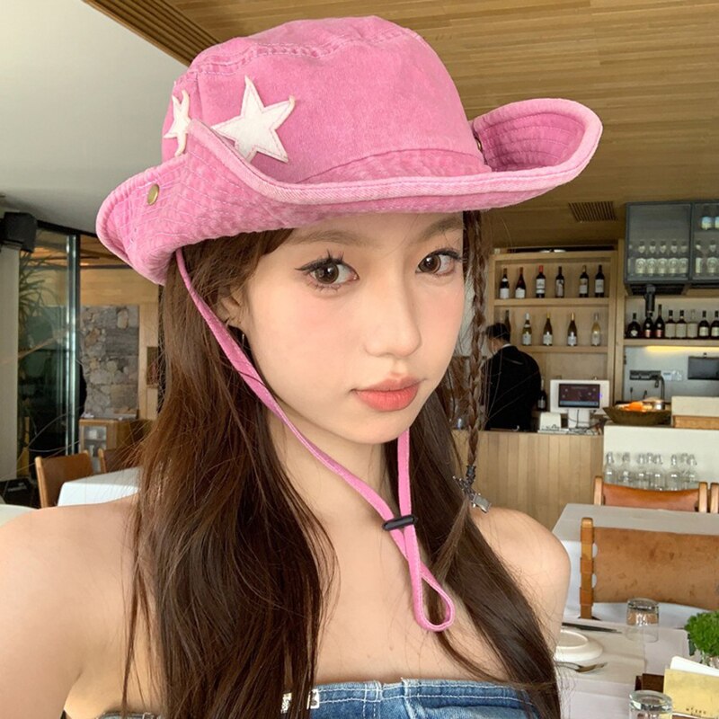 Женская ковбойская шляпа, винтажная легкая шляпа с широкими полями и принтом звезд в западном стиле для кемпинга на открытом воздухе
