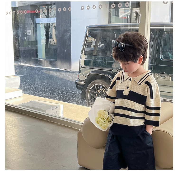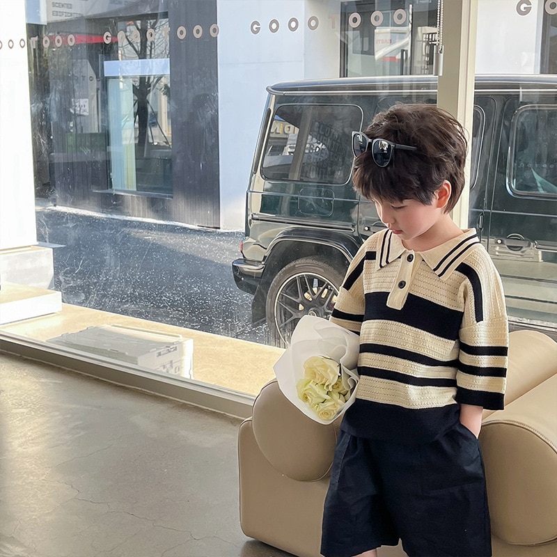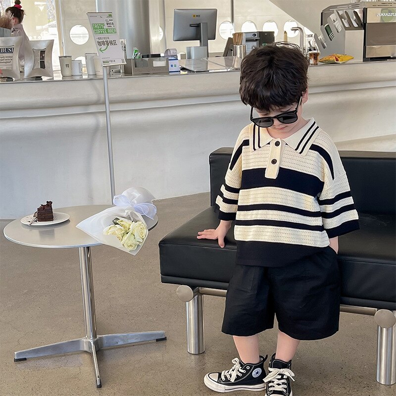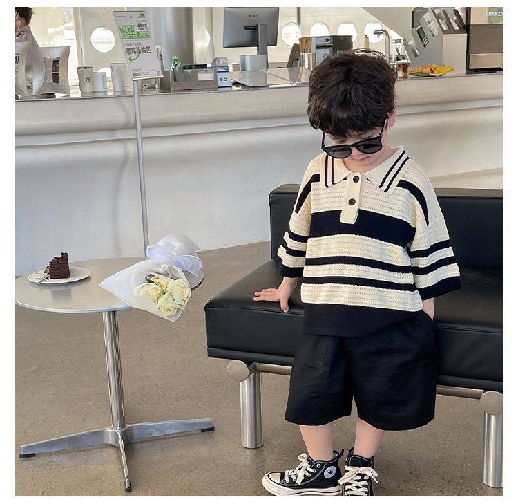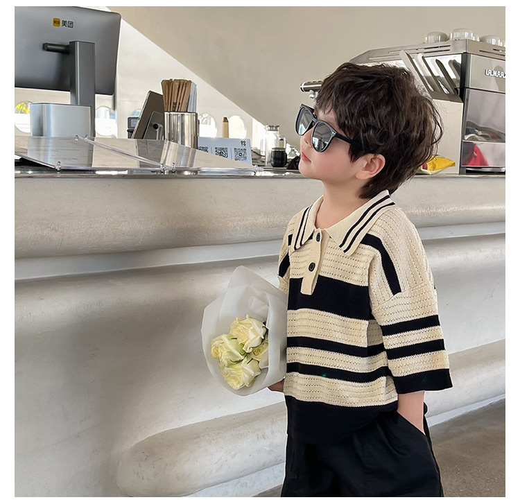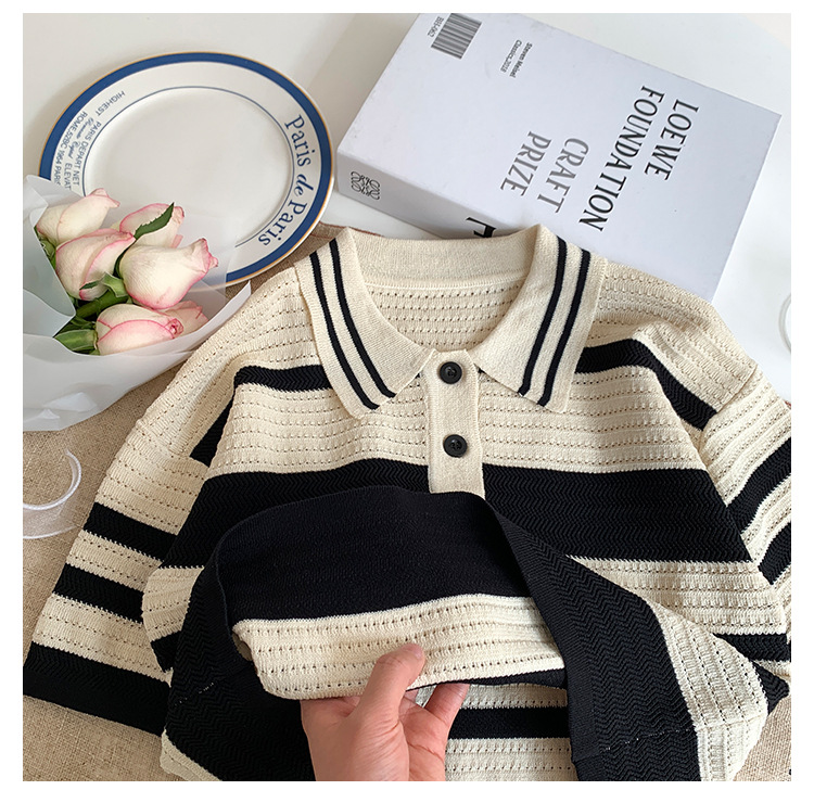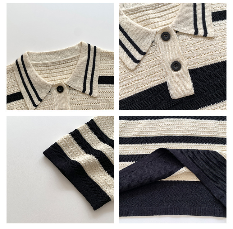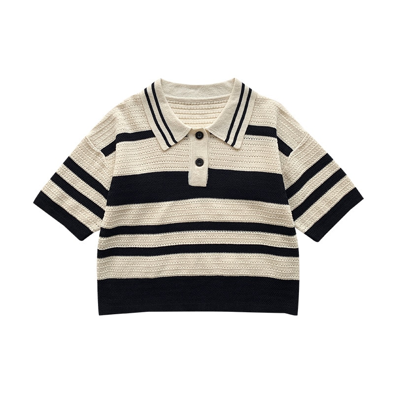 Женская летняя футболка-поло в полоску, с коротким рукавом
