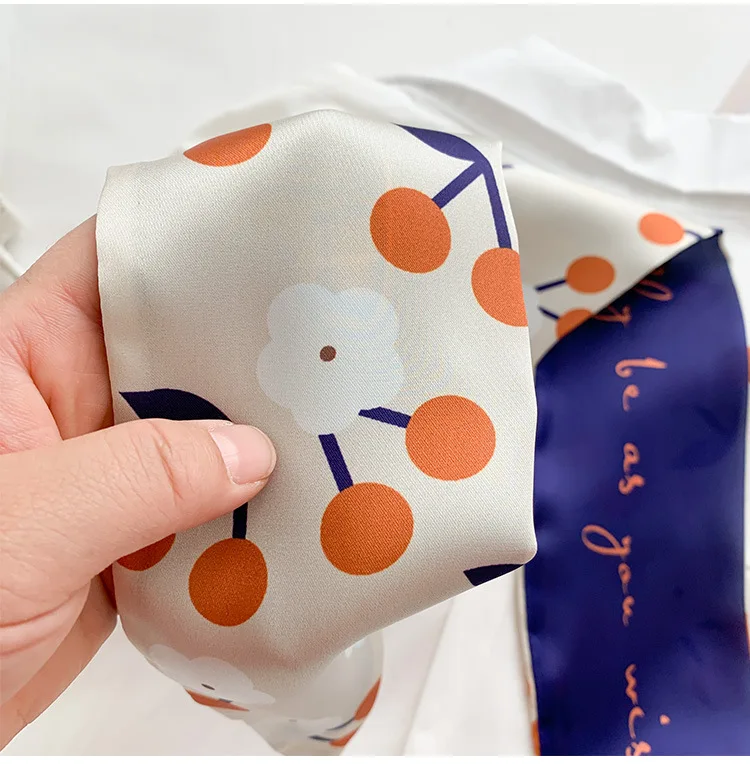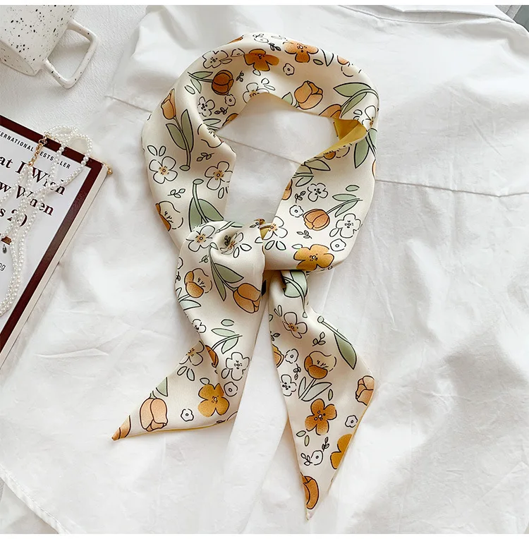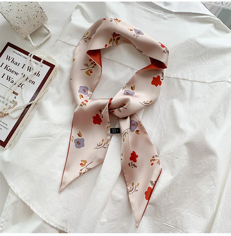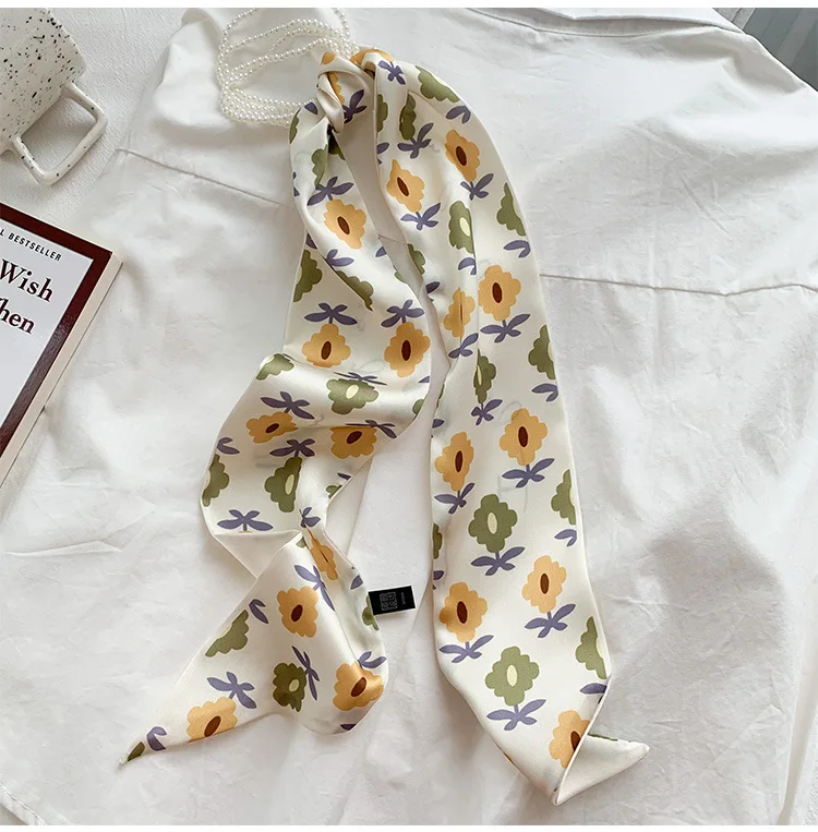 Женская маленькая Цветочная атласная лента для волос, модный Шелковый шарф для волос, свежие длинные Завязки для волос, повязка на голову для хвоста для девочек, украшение для волос