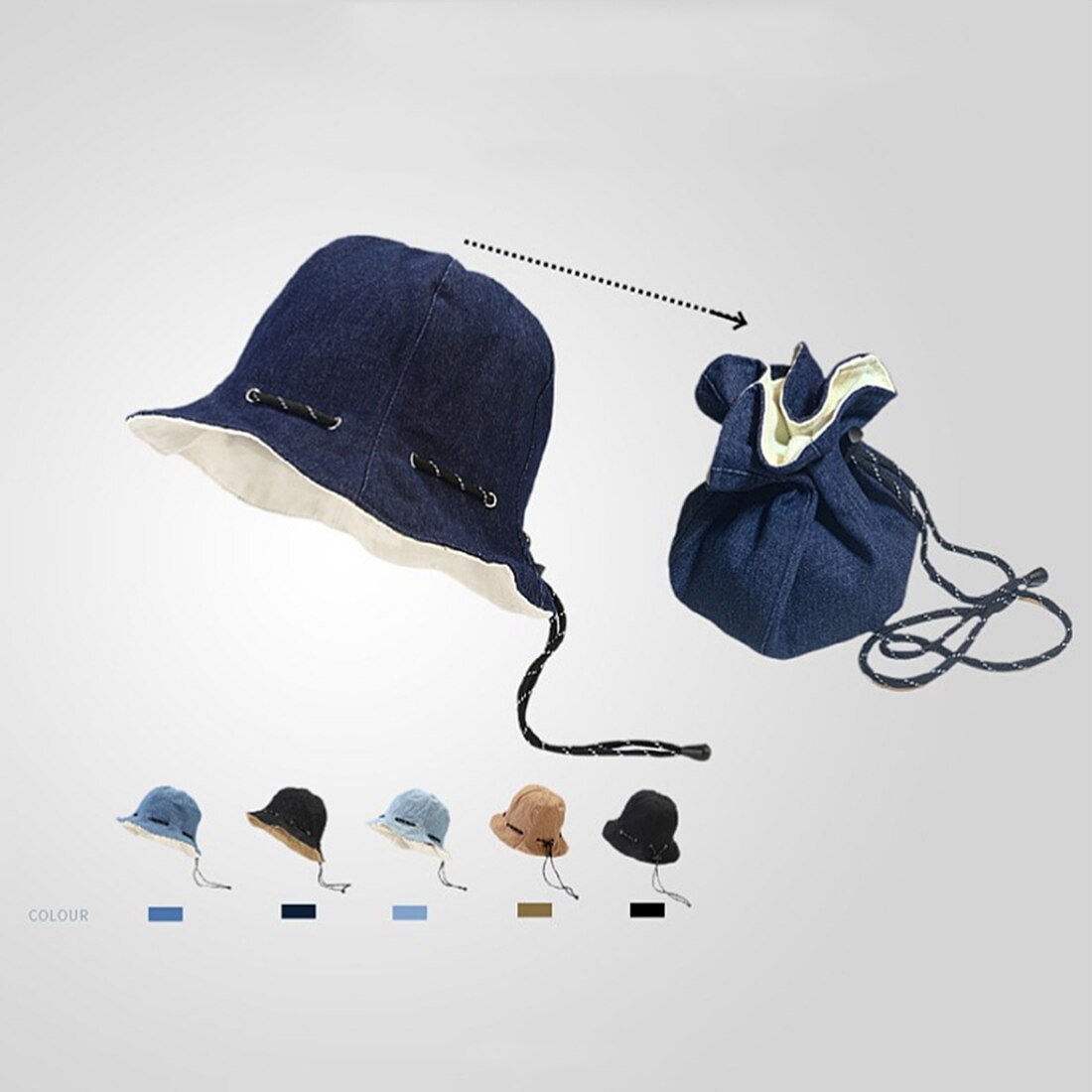 Однотонная Двусторонняя носимая джинсовая Рыбацкая Кепка, переносная Кепка для денежного мешка.