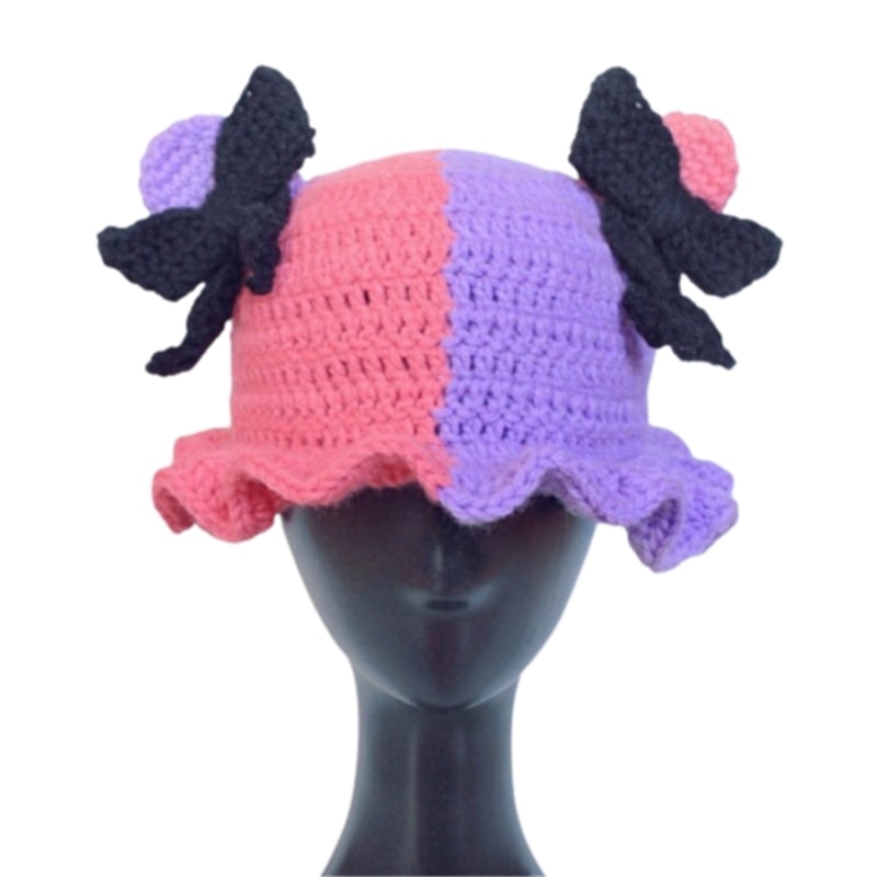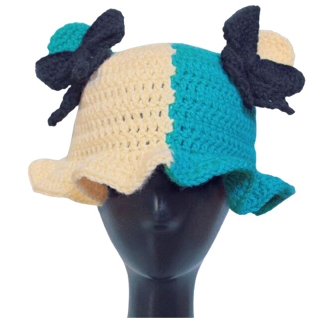Женская панама с милыми ушками, декоративные вязаные головные уборы ручной работы для Хэллоуина