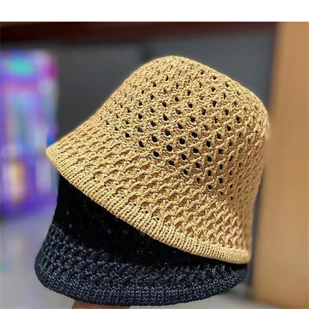 Женская панама, весенне-летняя вязаная шапка с отверстиями, однотонная Солнцезащитная шапка, Женская Повседневная Складная пляжная шапка, солнцезащитные шапки